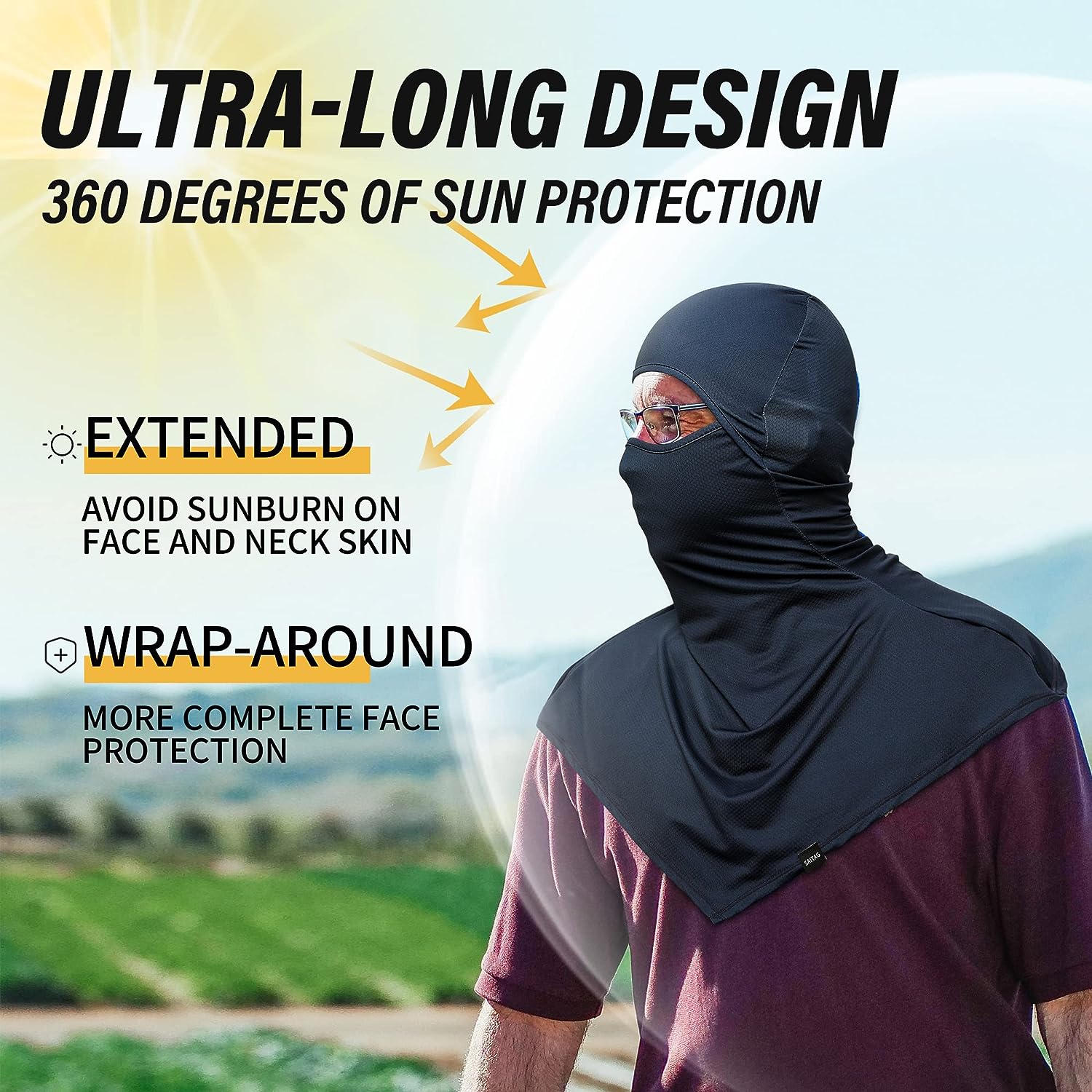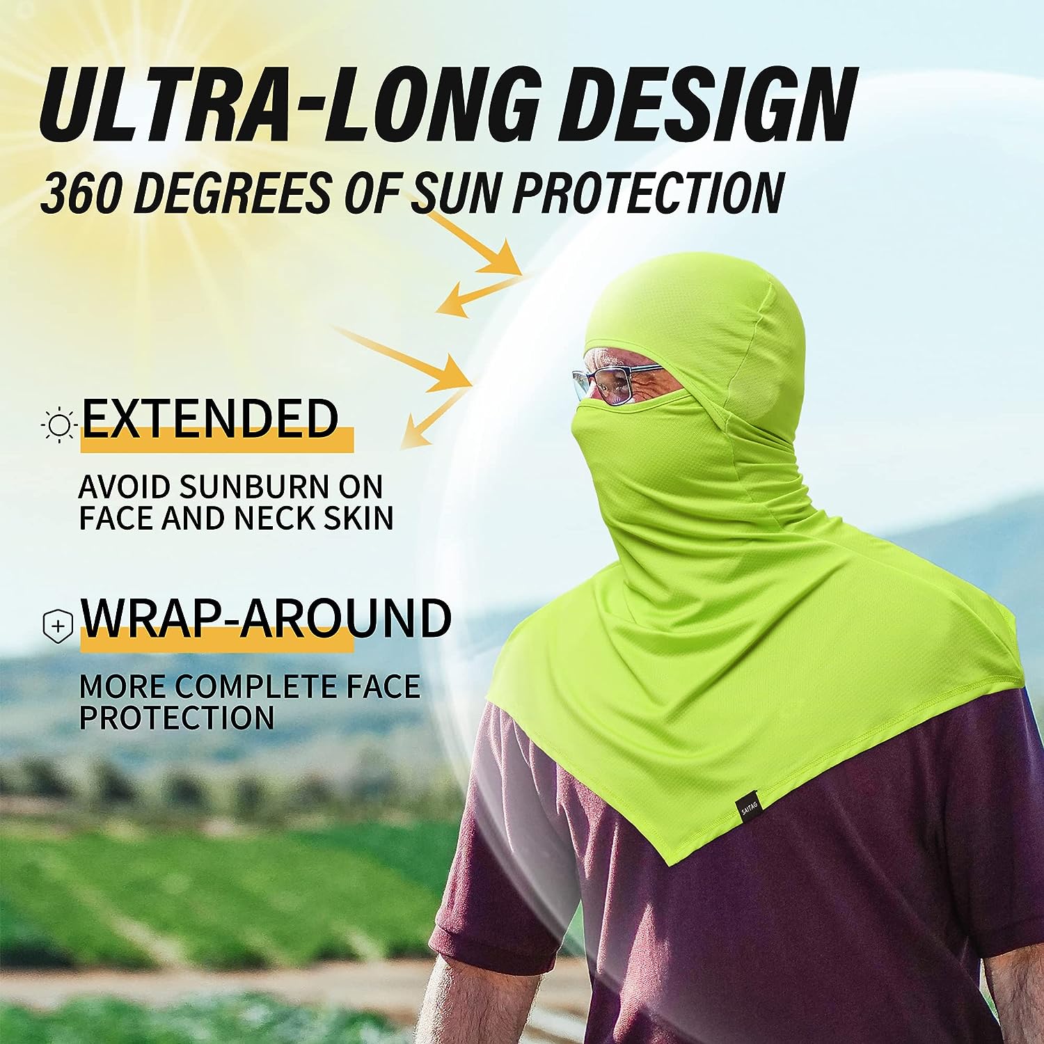 • LONG NECK DESIGN: The neck length is great, that get tucked into your jacket nicely and cover your neck and shoulders.You won't worry your face and neck skin will be exposed to the sun, wind and other outdoor elements