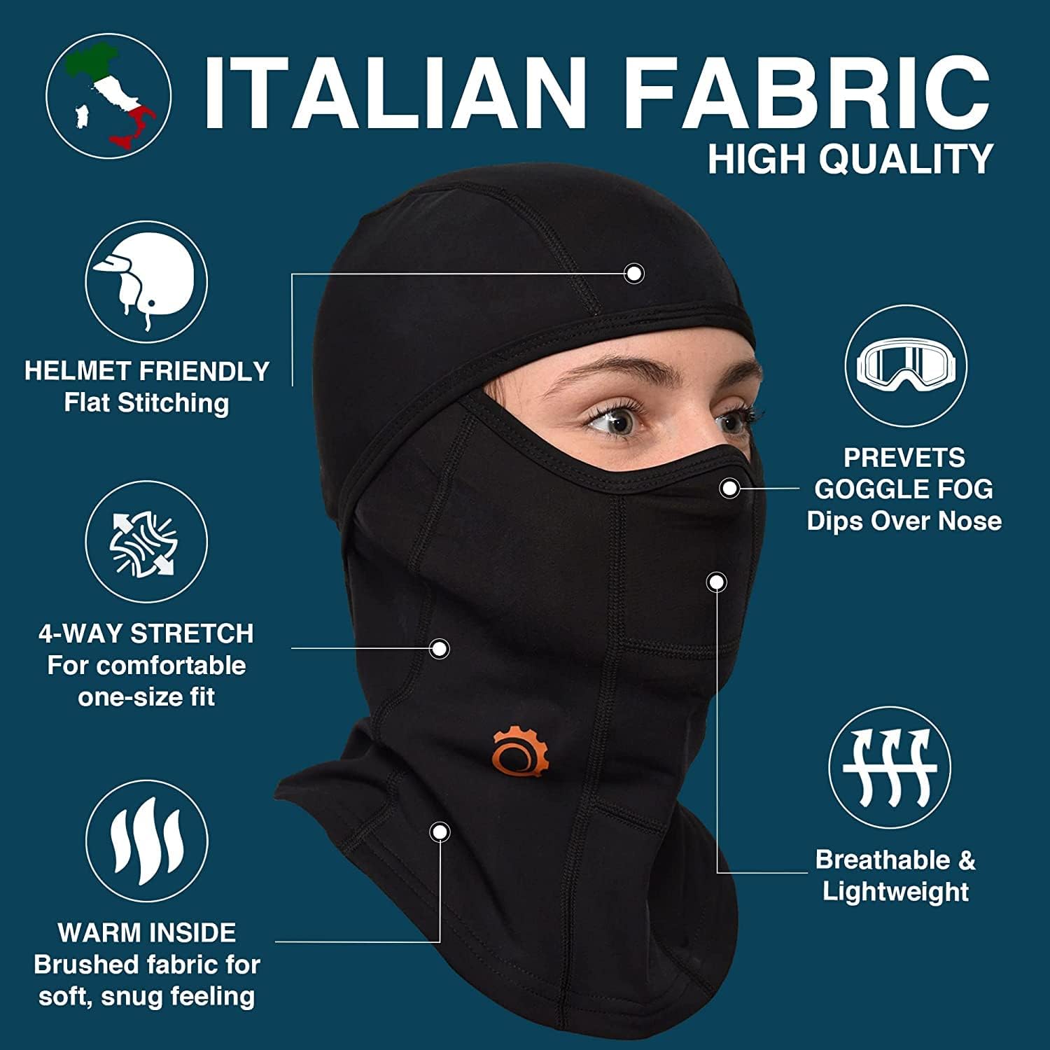 • Made of 4-stretch material, sourced from Italy, our thermal winter face mask for men & women gives superior comfort. ski mask for women is hinged & helmet friendly. It gives full face cover and protection from snow, wind, dust, cold and UV.