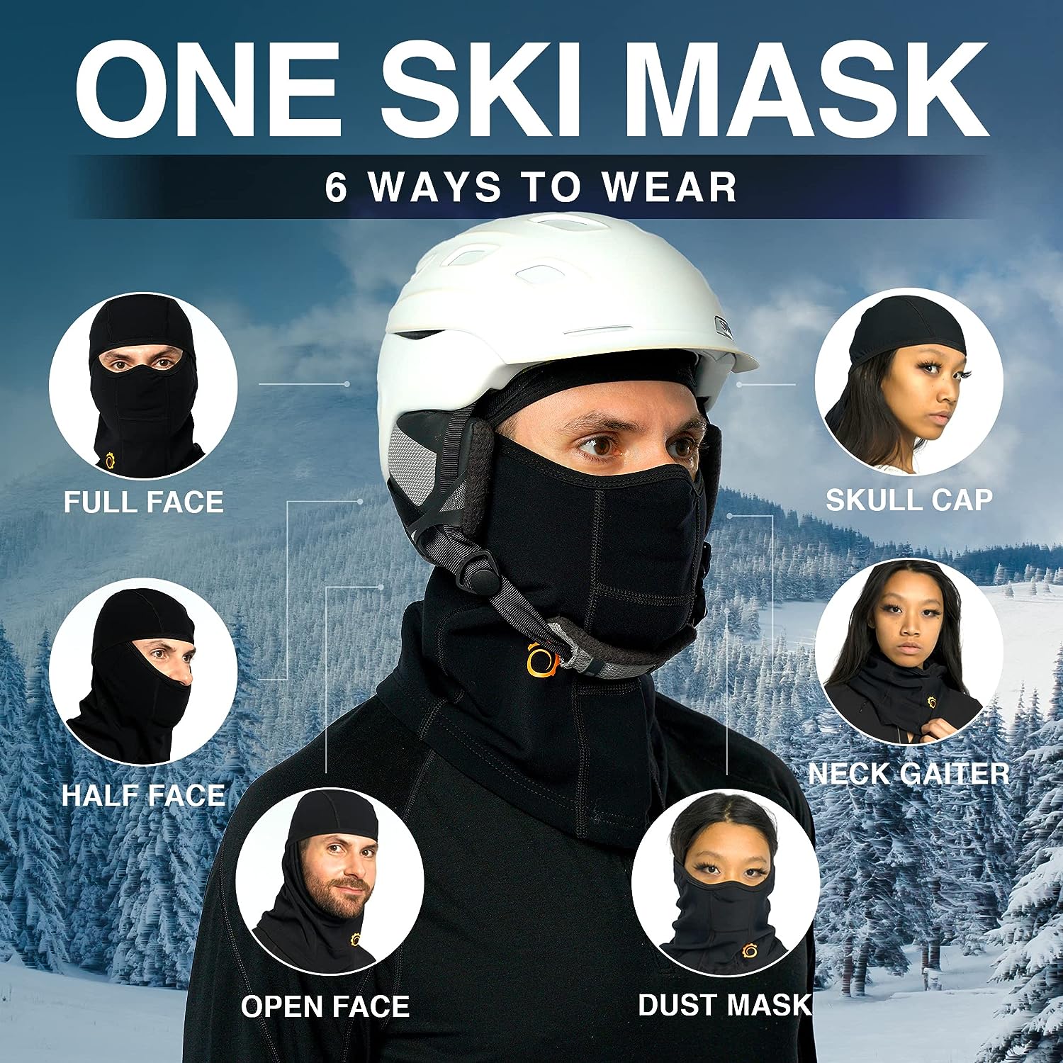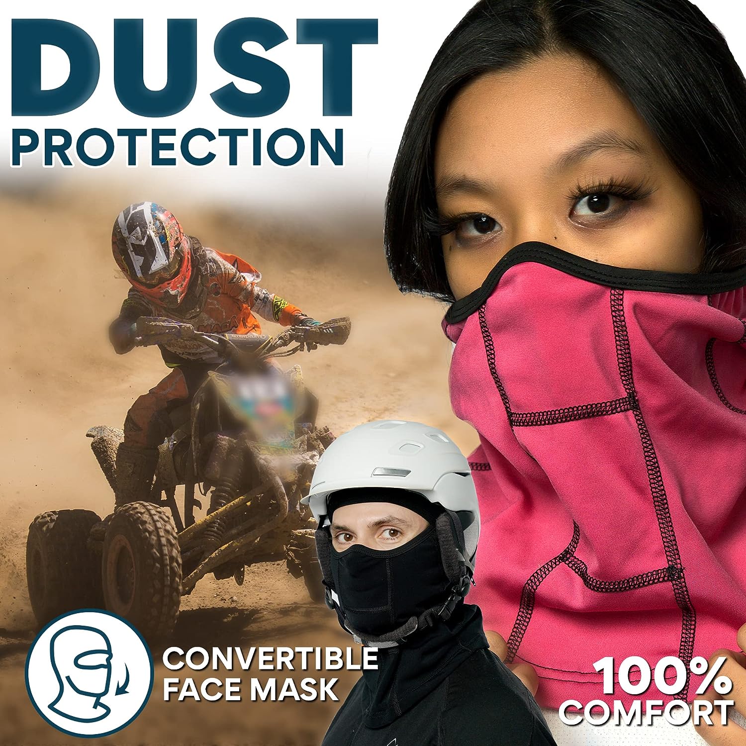 • 6-way convertible face mask for winter can be worn as a full face covering for cold weather, half face mask, neck gaiter, skull cap, or dust mask. Womens cold weather gear keeps you warm and comfy with optimal airflow to ensure no goggles fogging.