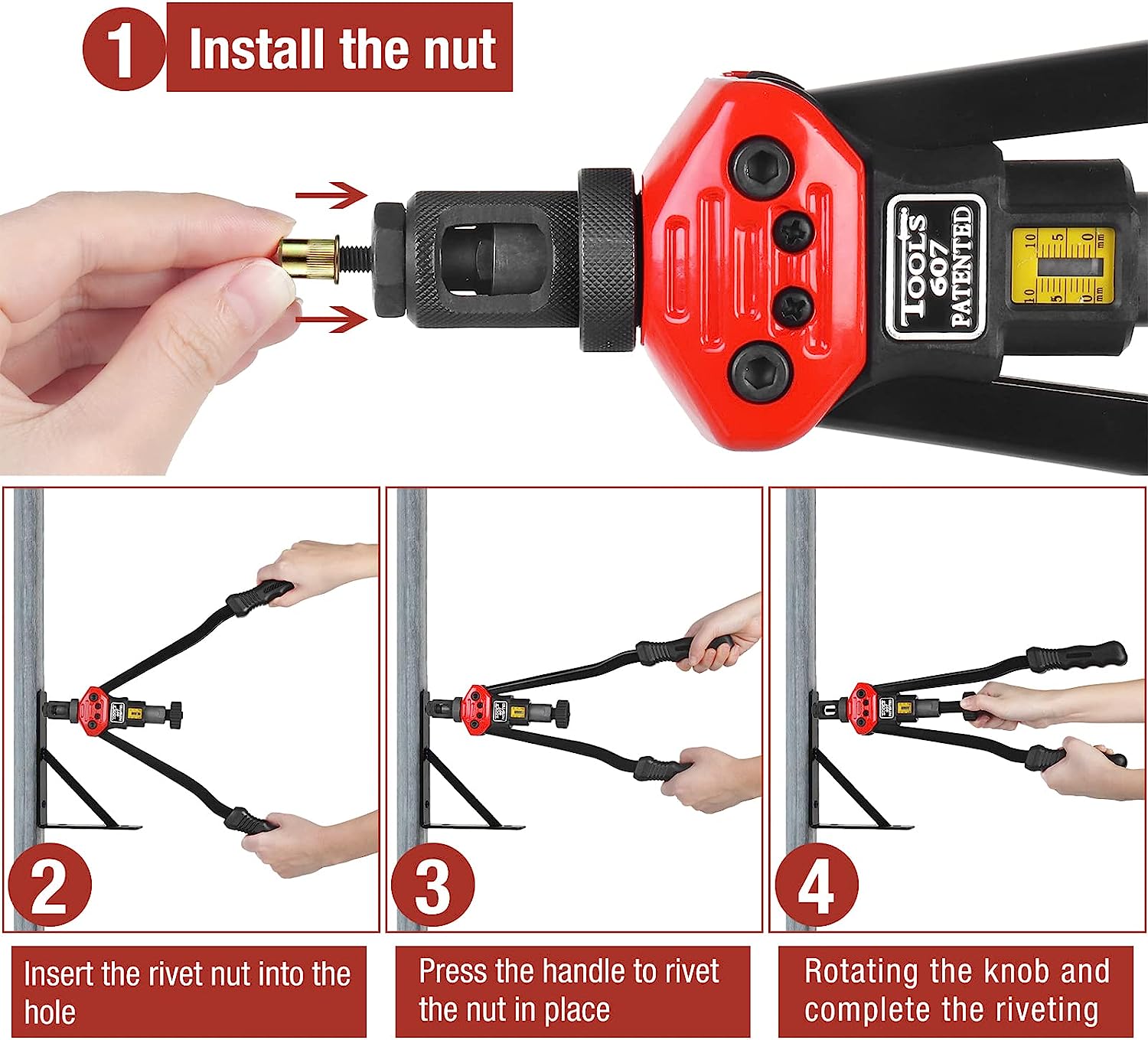 • STRONG AND DURABLE - The 16" rivet nut tool is made from thick carbon steel with heat treated, and black phosphating finishing protects against corrosion. U cross-section of arm is of high reliability to prevent getting bent. With designed structure and tough materiels it is sturdy and durable enough for long life performance.