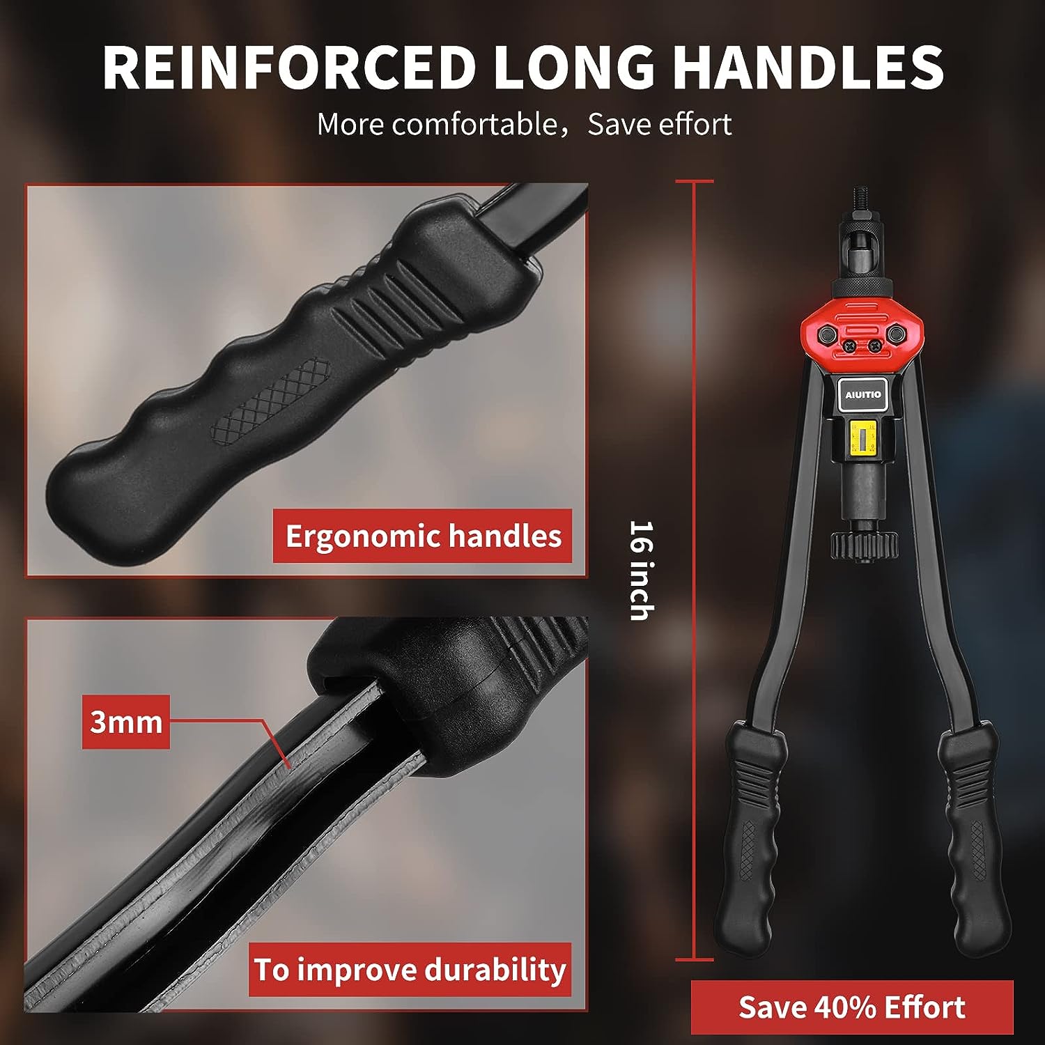 AIUITIO 16" Rivet Nut Tool, Rivnut Tool Kit with 13 Metric and SAE Mandrels, Nutsert Rivet Tool Set with 200Pcs Rivnuts, Threaded Insert Hand Riveter with Rugged Carrying Case