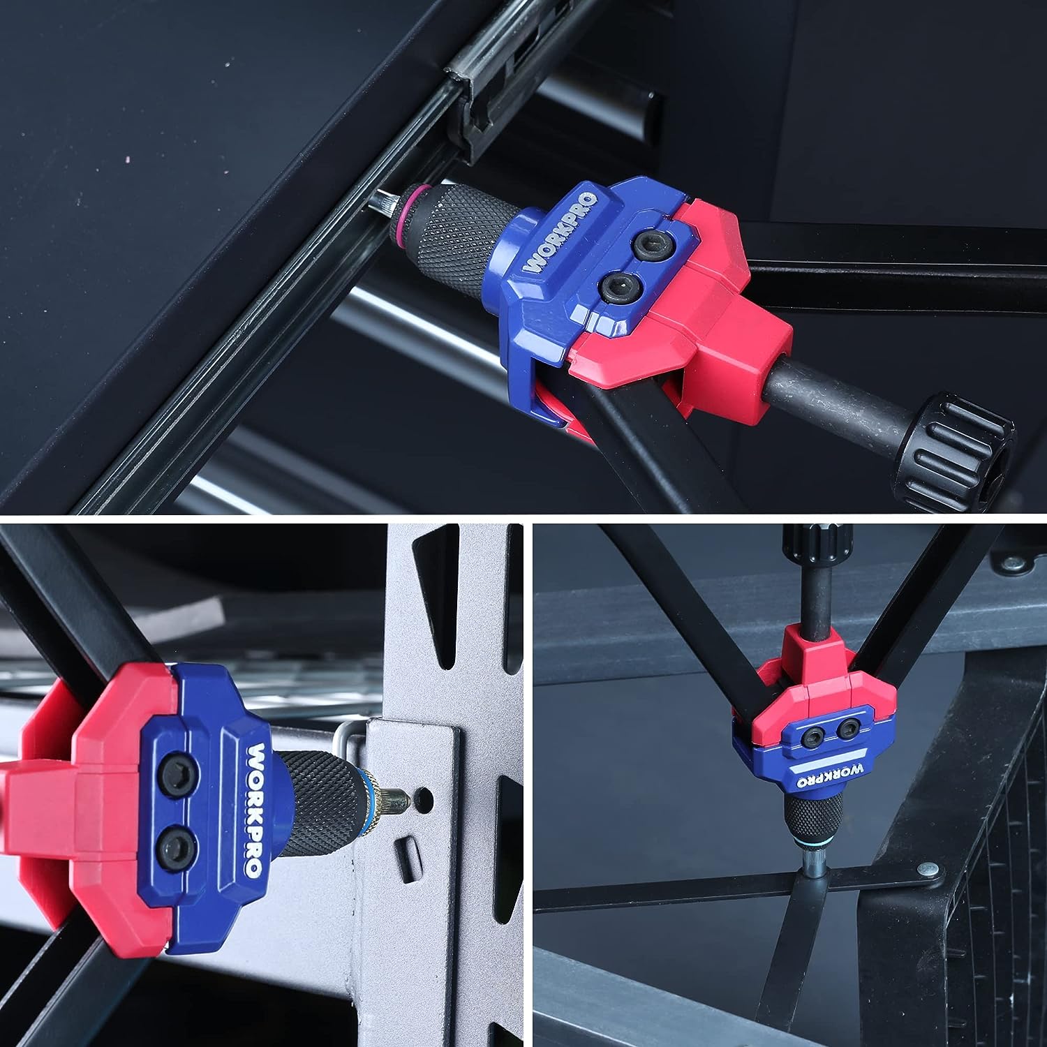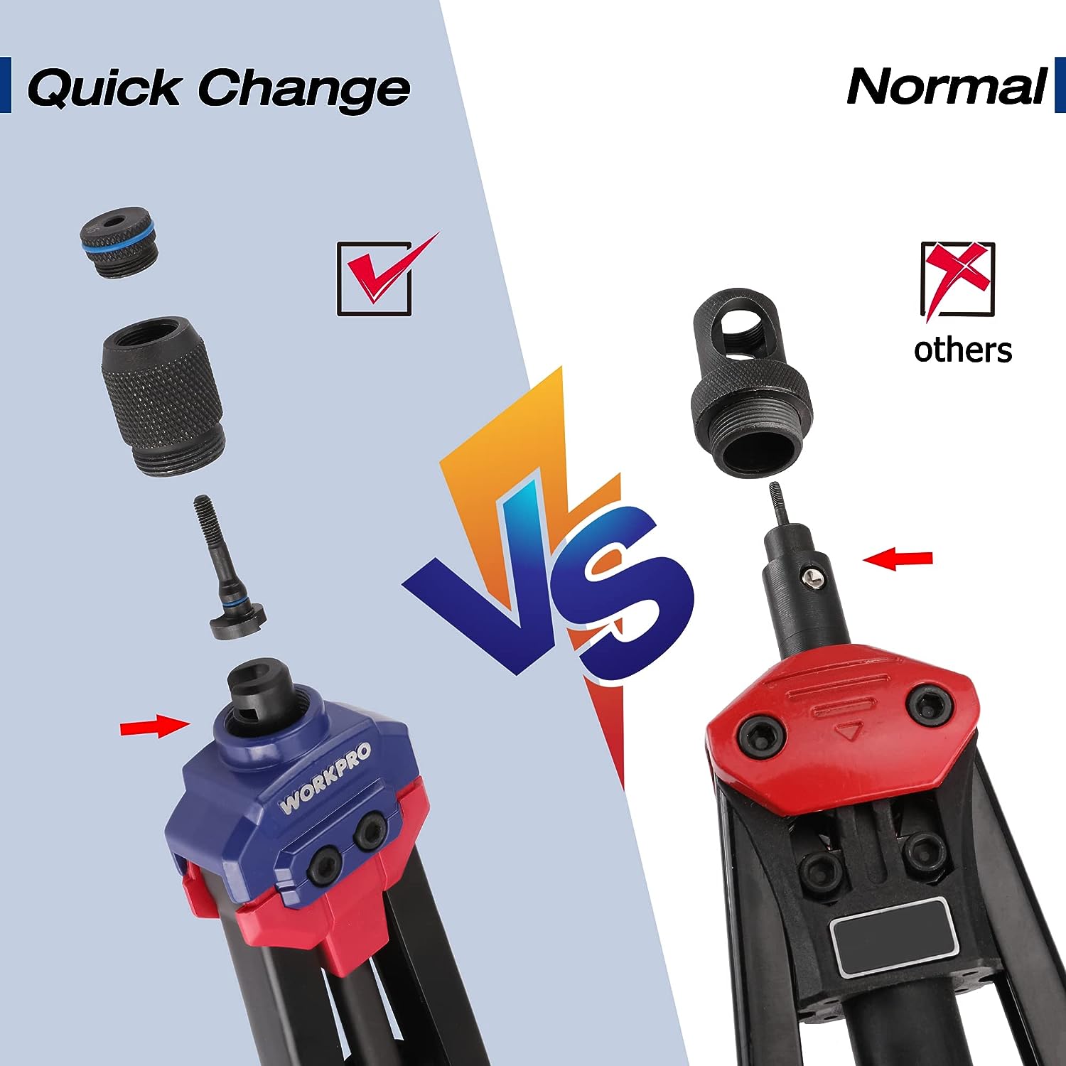 • Quick-change Head: The pop rivet gun kit features a quick-change head that allows you to replace the nosepieces and mandrels without any additional tools, saving you time and effort.