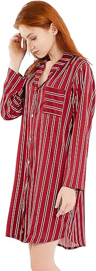 Femofit Satin Nightgown for Women Long Sleeve Button Down Nightshirt Striped Pajama Top Soft Sleepwear Sleepshirt