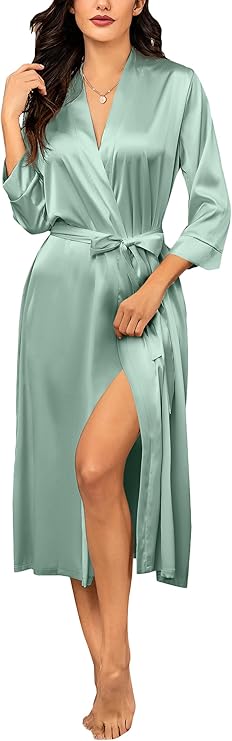 HOTOUCH Silk Robes for Women Long Bridesmaid Wedding Party Satin Robes Sleepwear with Pockets