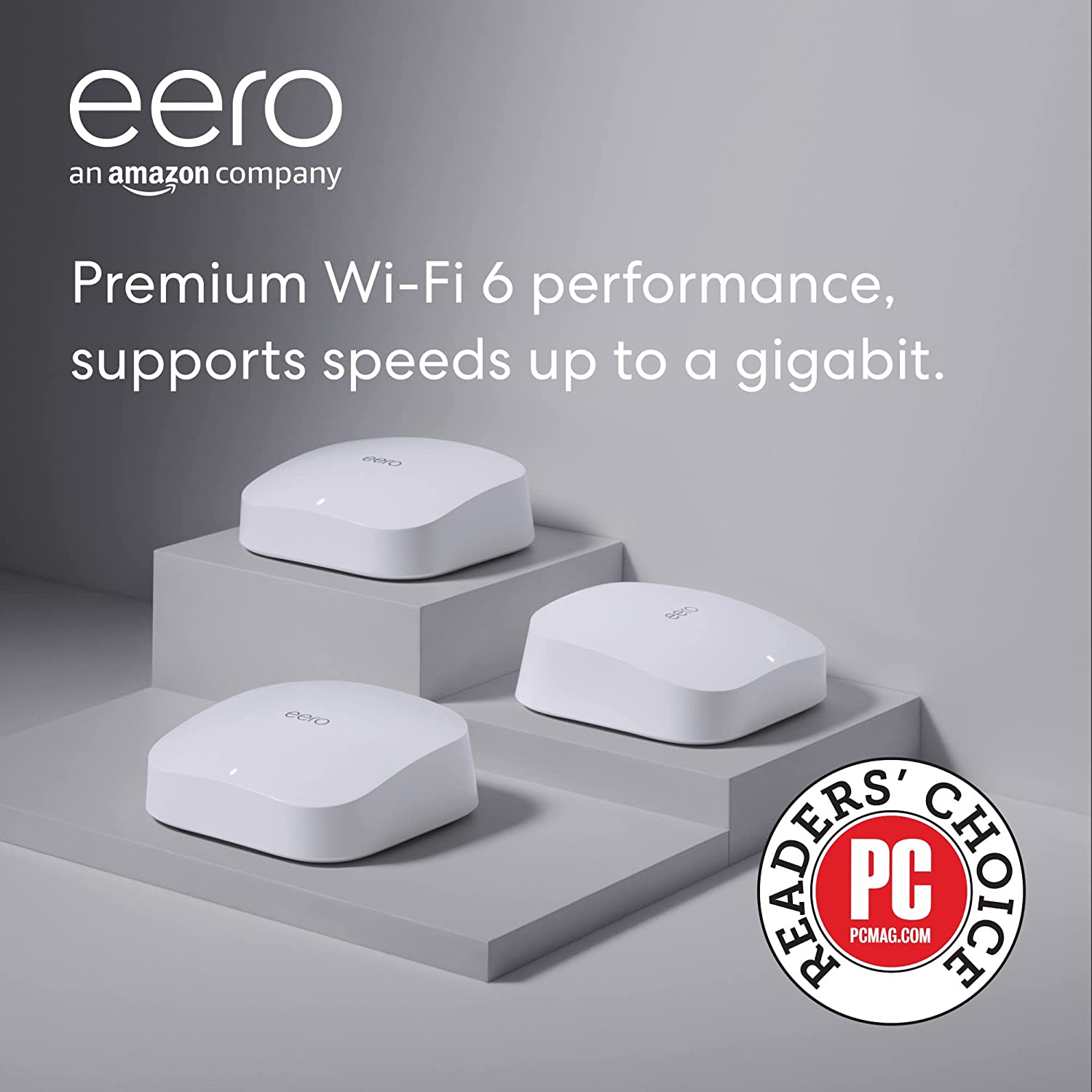 Amazon eero Pro 6 mesh Wi-Fi 6 router | Fast and reliable gigabit speeds | connect 75+ devices | Coverage up to 2,000 sq. ft. | 2020 release