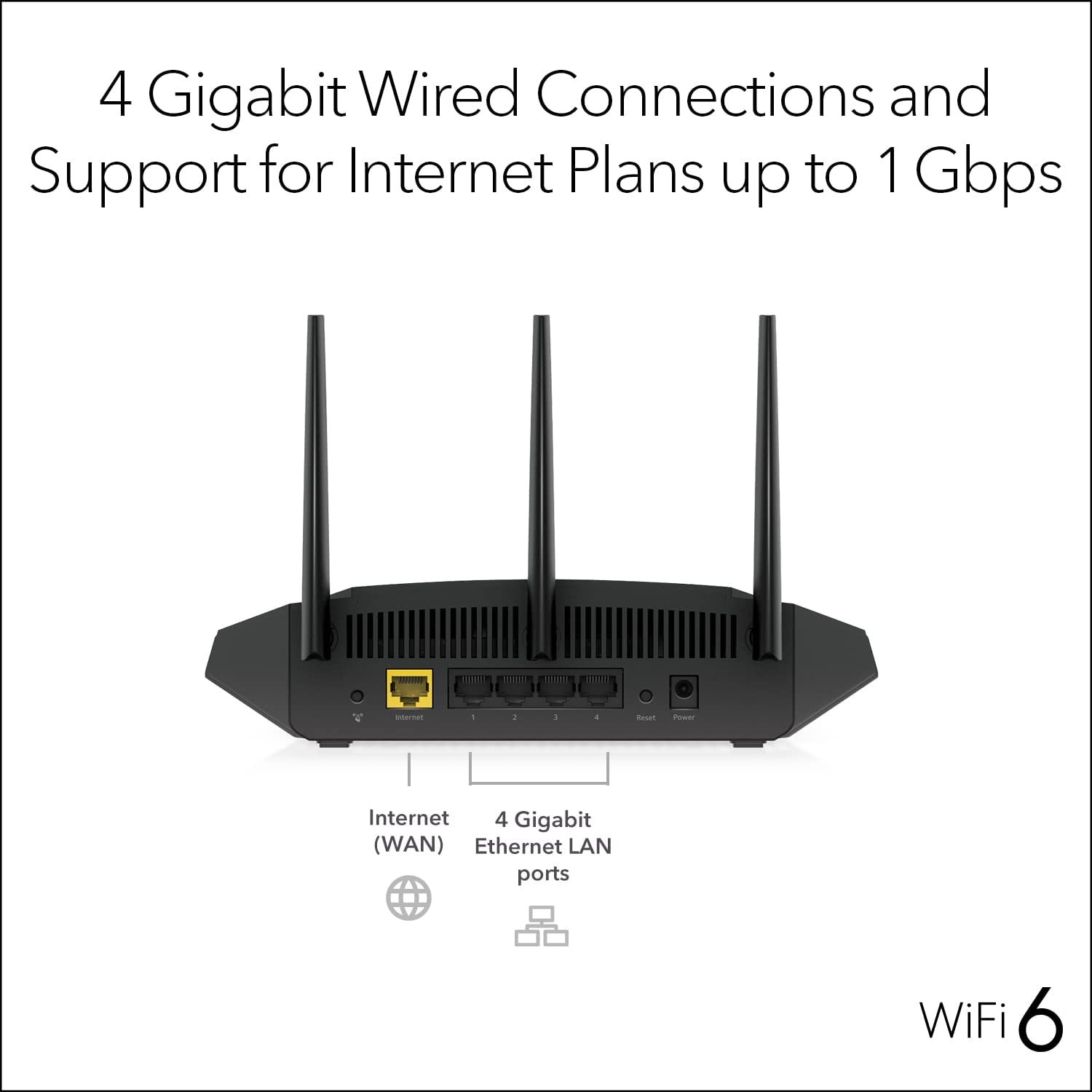 The NETGEAR 4-Stream AX1800 WiFi 6 Router, built with the latest generation WiFi 6 technology, provides greater capacity to handle more devices on your network and speeds up to 1.8Gbps ensuring that you can enjoy blazing fast internet connections on all your devices. This next-gen router is recommended for a small to medium home, up to 1,500 sq. ft., with 20 or more connected devices. Powerful quad-core processor ensures superior performance for concurrent real-time applications such as multimedia streaming, online gaming and audio/video chats. With NETGEAR Armor, you get advanced cyber threat protection for your home network and connected devices. NETGEAR Smart Parental Controls™ let you easily manage your kids’ time online. Comes with 1 year free Armor.
