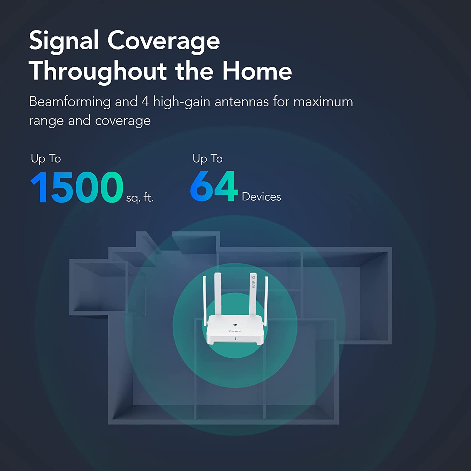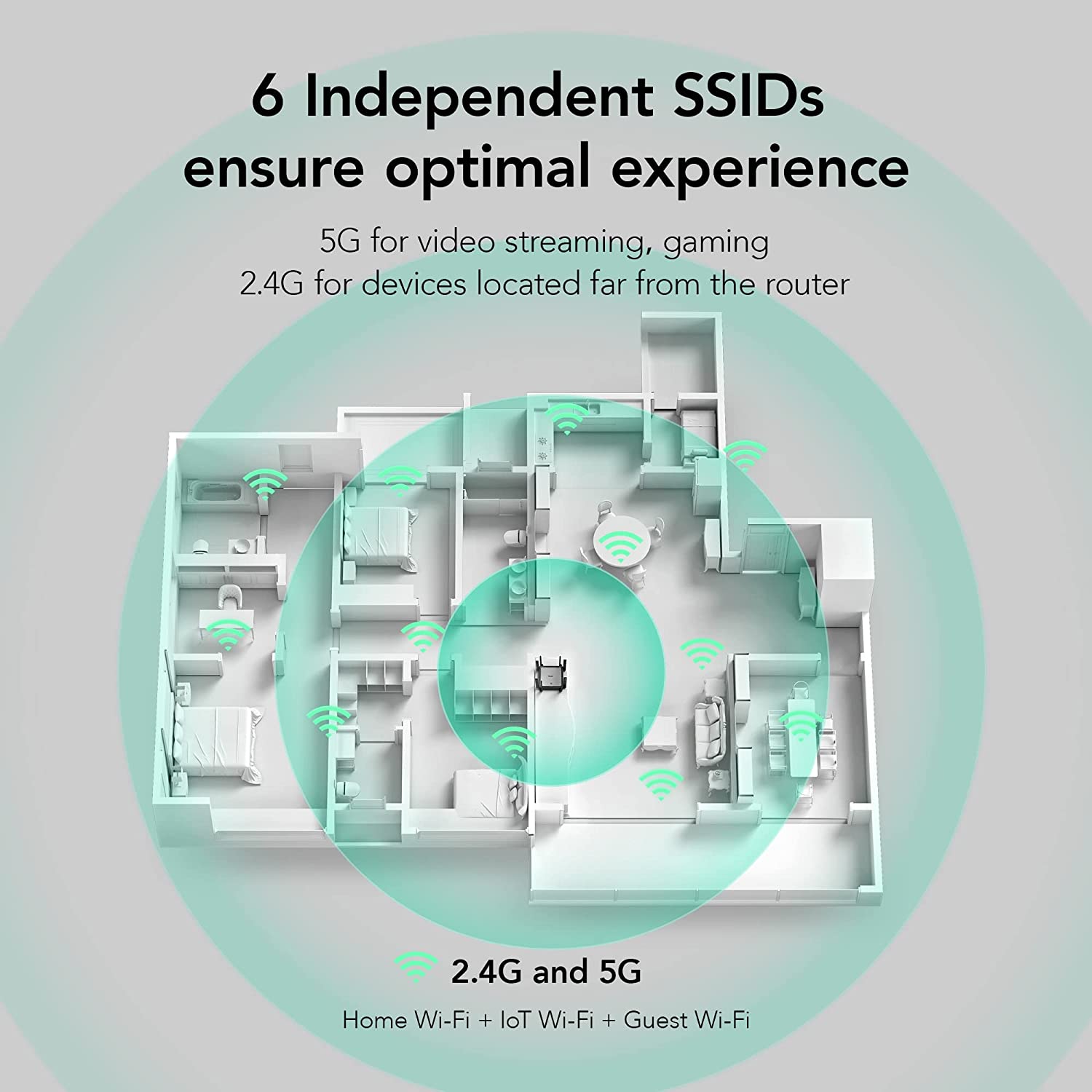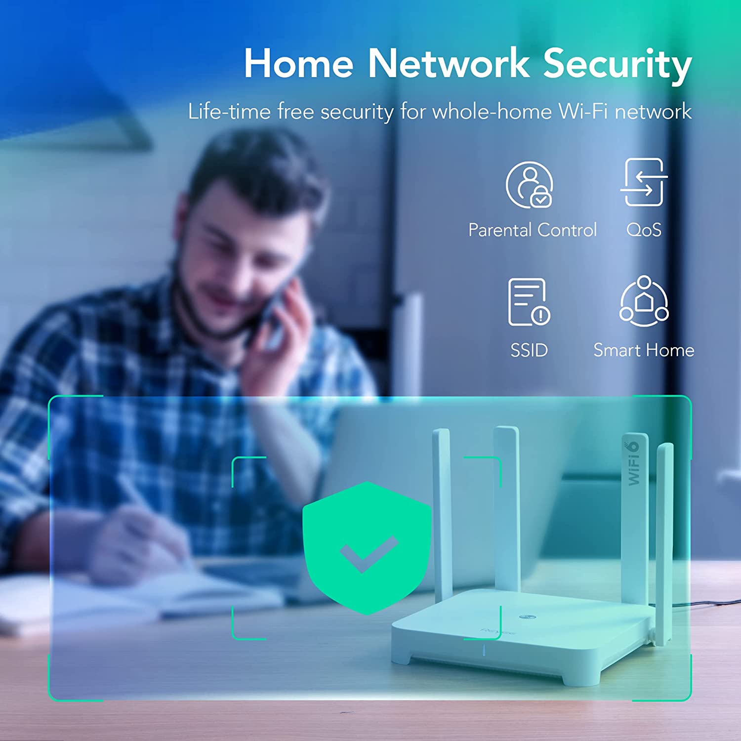• Better Signal: This Wi-Fi 6 Wireless Router includes eight omnidirectional antennas with 4+4 high-power FEM amplifiers. The wireless signal coverage can reach up to 2000 square feet when combined with beamforming filtering. The signal is stronger when it passes through one more wall than four antennas, and diverse room kinds are not afraid.