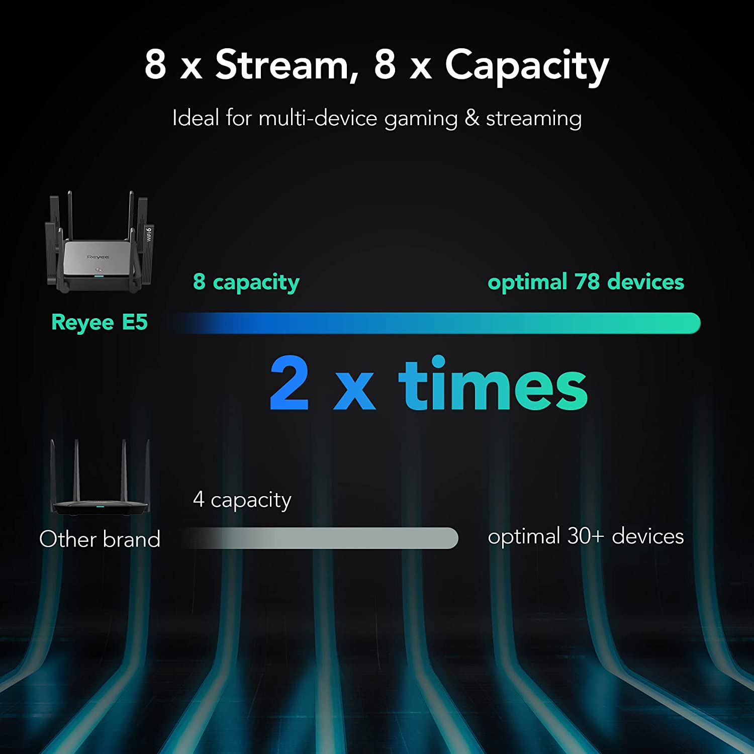 • High Performance and Stability: If your network isn't up to par, consider purchasing the Reyee AX3200 . Our wireless router provides a stable network with high performance for 78 devices using the groundbreaking OFDMA feature and MU-MIMO technology,allowing for simultaneous video streaming and greater family connectivity.