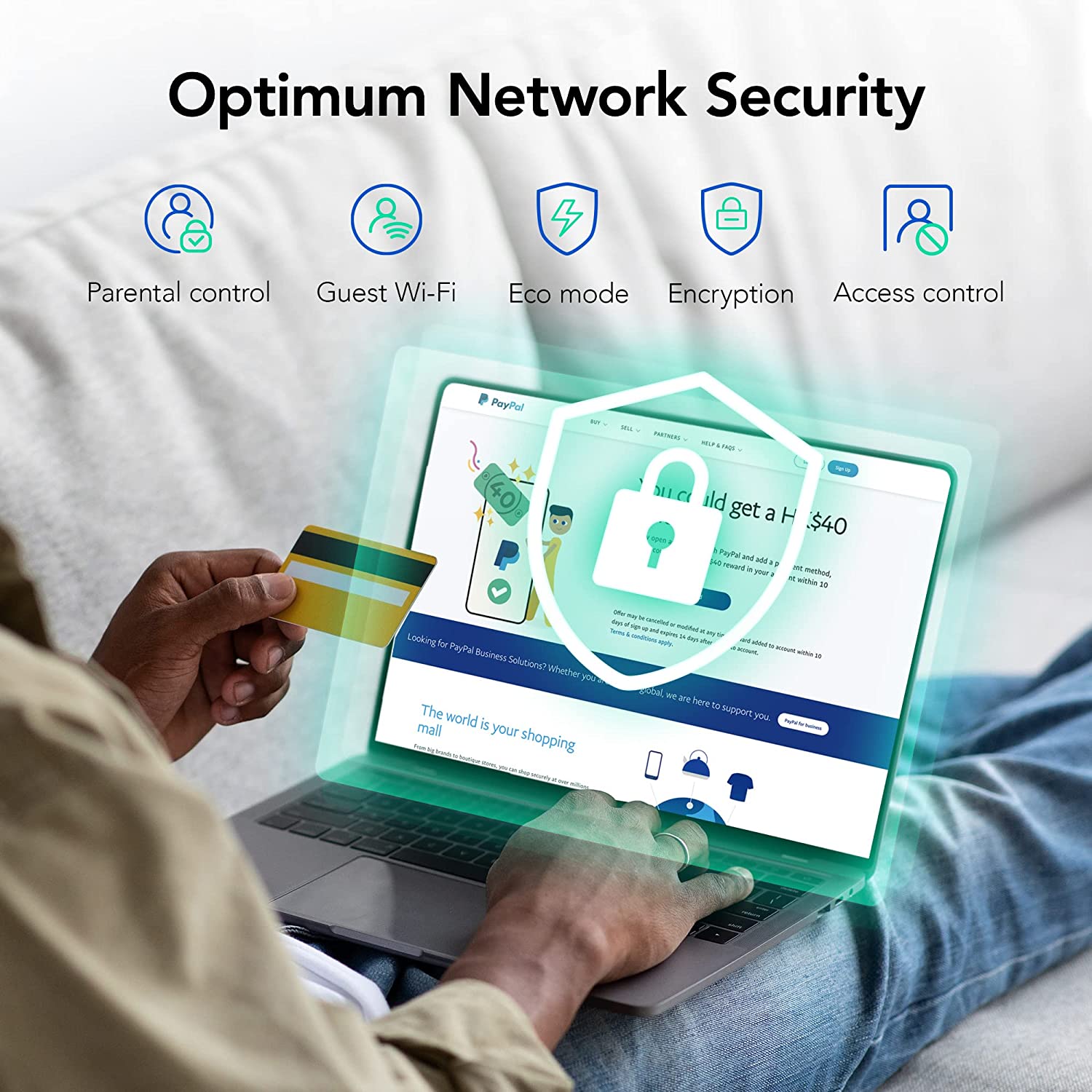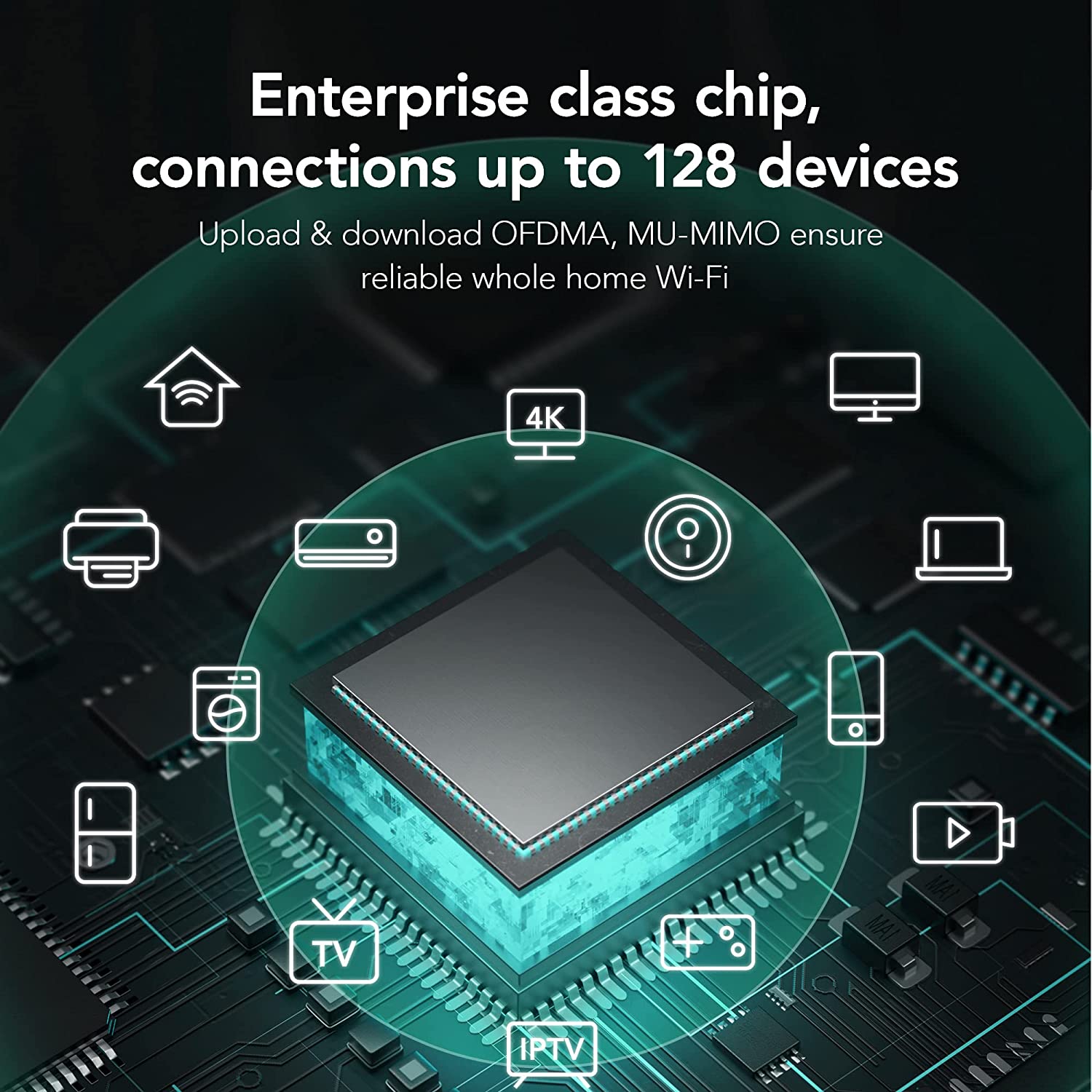 • Multi-user-friendly design: This Wi-Fi 6 Wireless Router supports the 802.11ax Wi-Fi standard, allowing many users to share channels and connect up to 128 devices, increasing network capacity and efficiency in congested areas. Easily address the party's multi-device dilemma.