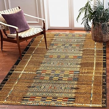 Liora Manne Marina Low Profile Durable Indoor/Outdoor Woven Rug- Tribal Stripe Gold 6'6" x 9'4"