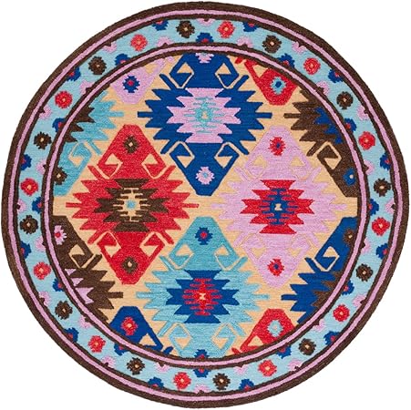 SAFAVIEH Aspen Collection 7' Round Gold/Blue APN452D Handmade Boho Tribal Southwestern Premium Wool Entryway Foyer Living Room Bedroom Kitchen Area Rug