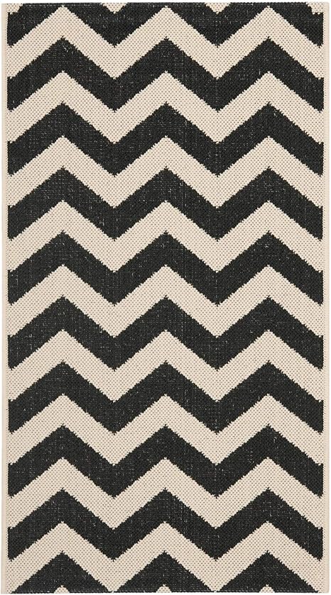 SAFAVIEH Courtyard Collection 2'7" x 5' Black/Beige CY6244 Chevron Indoor/ Outdoor Splashproof Easy Scrubbing Patio Backyard Mudroom Area Rug