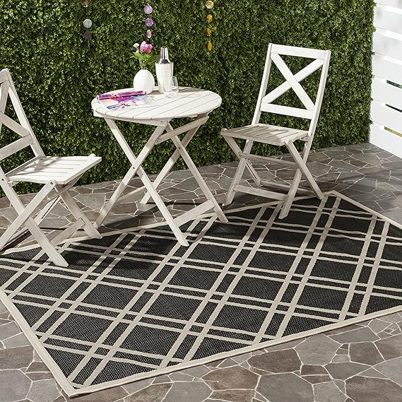 SAFAVIEH Courtyard Collection 2'7" x 5' Black/Beige CY6923 Trellis Indoor/ Outdoor Waterproof Easy Cleaning Patio Backyard Mudroom Area Rug