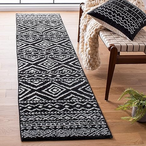 SAFAVIEH Tulum Collection Runner Rug - 2' x 9', Black & Ivory, Moroccan Boho Distressed Design, Non-Shedding & Easy Care, Ideal for High Traffic Areas in Living Room, Bedroom (TUL267Z)