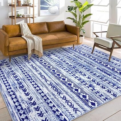 5x7 Area Rug for Living Room, Machine Washable Moroccan Large Blue Area Rug Non-Slip, Ultra Soft Boho Geometric Tribal Traditional Farmhouse Carpet for Dining Room Bedroom Office Home