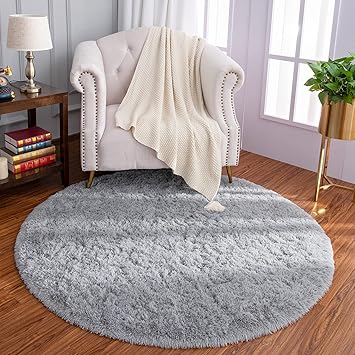 LOCHAS Luxury Round Fluffy Area Rugs for Bedroom Kids Girls Room Nursery, Super Soft Circle Rug, Cute Shaggy Carpet for Children Living Room, 4x4 Feet Grey
