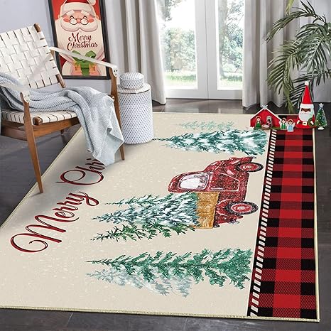 Dintszyayue Christmas Area Rug 3'x5' Non Slip Washable Small Kitchen Area Rug Floor Carpet for Entryway Living Room Bedroom
