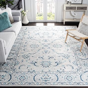 SAFAVIEH Brentwood Collection Area Rug - 8' x 10', Light Grey & Blue, Oriental Floral Scroll Design, Non-Shedding & Easy Care, Ideal for High Traffic Areas in Living Room, Bedroom (BNT854G)