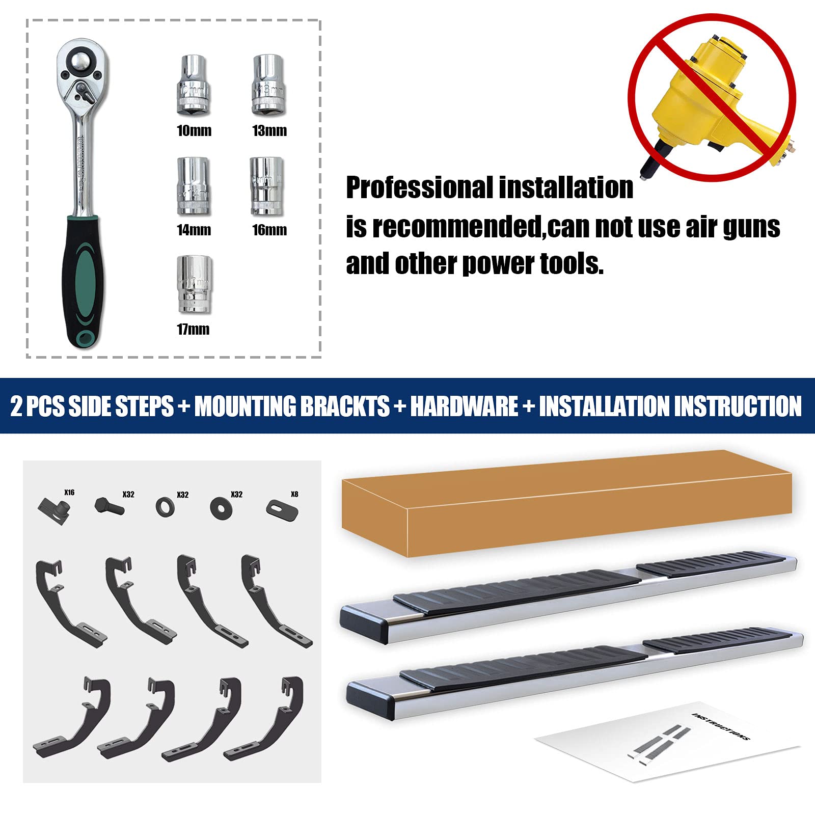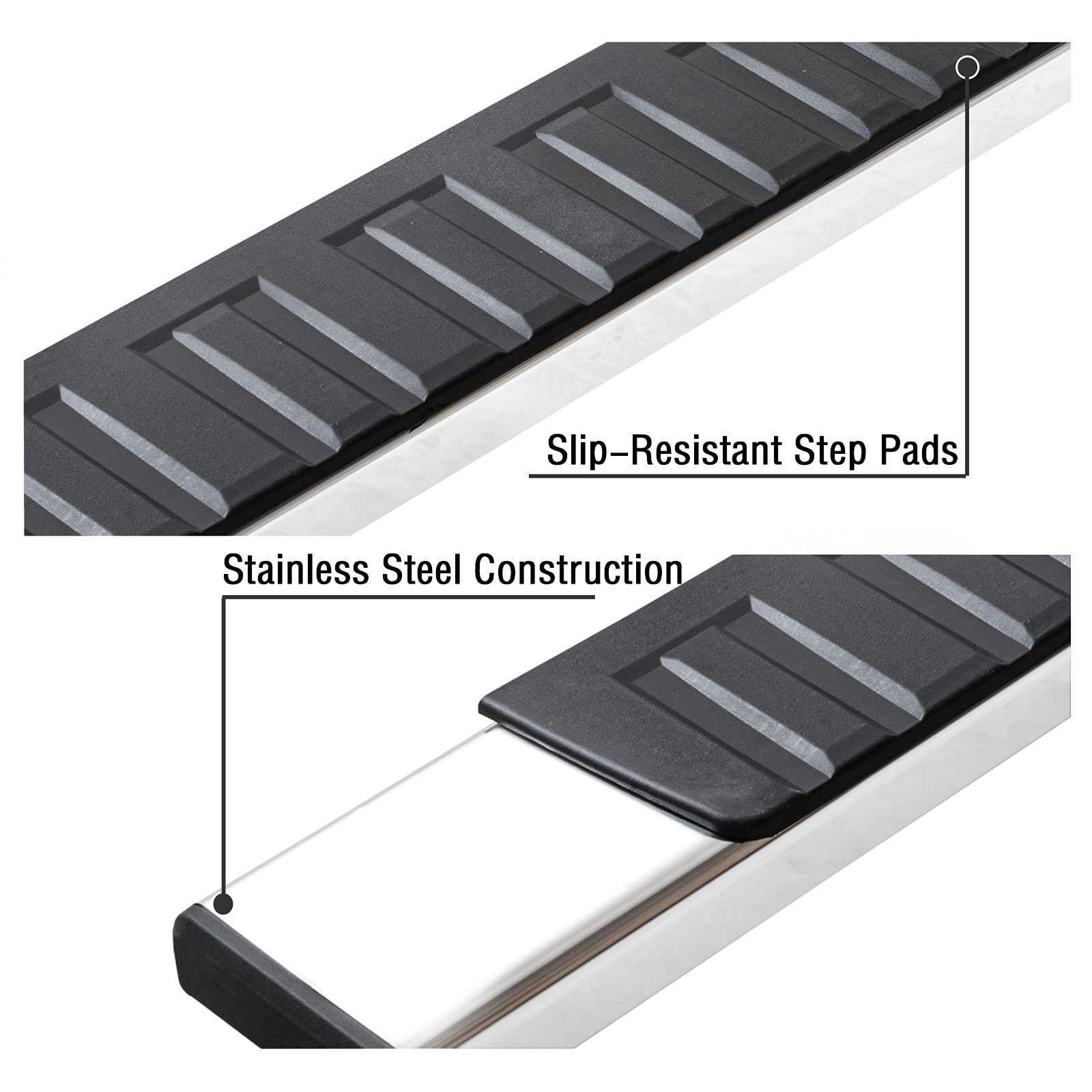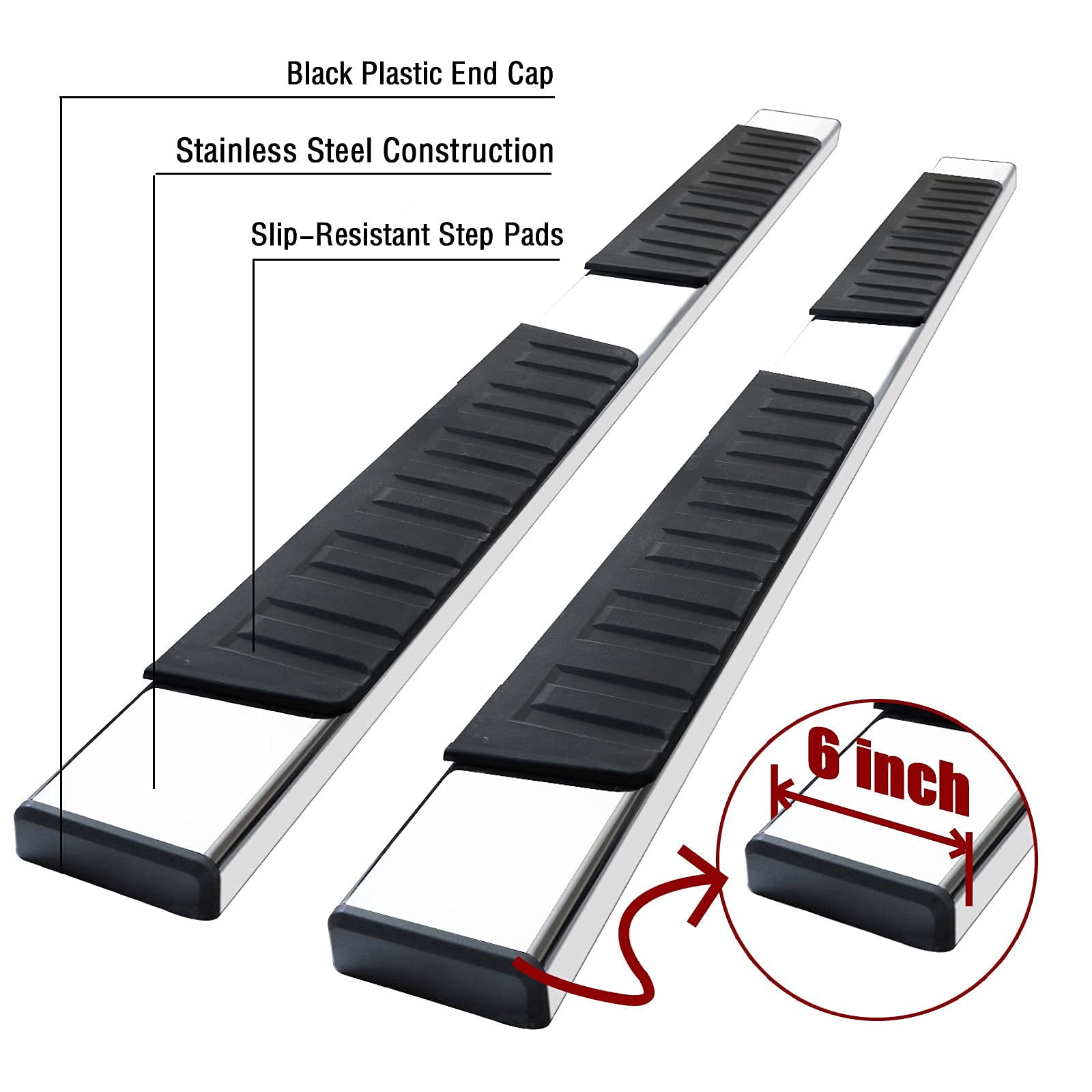 -Matched length:85" length Stainless Steel Pair Side Step Running Board Perfectly match the body of your Silverado crew cab.