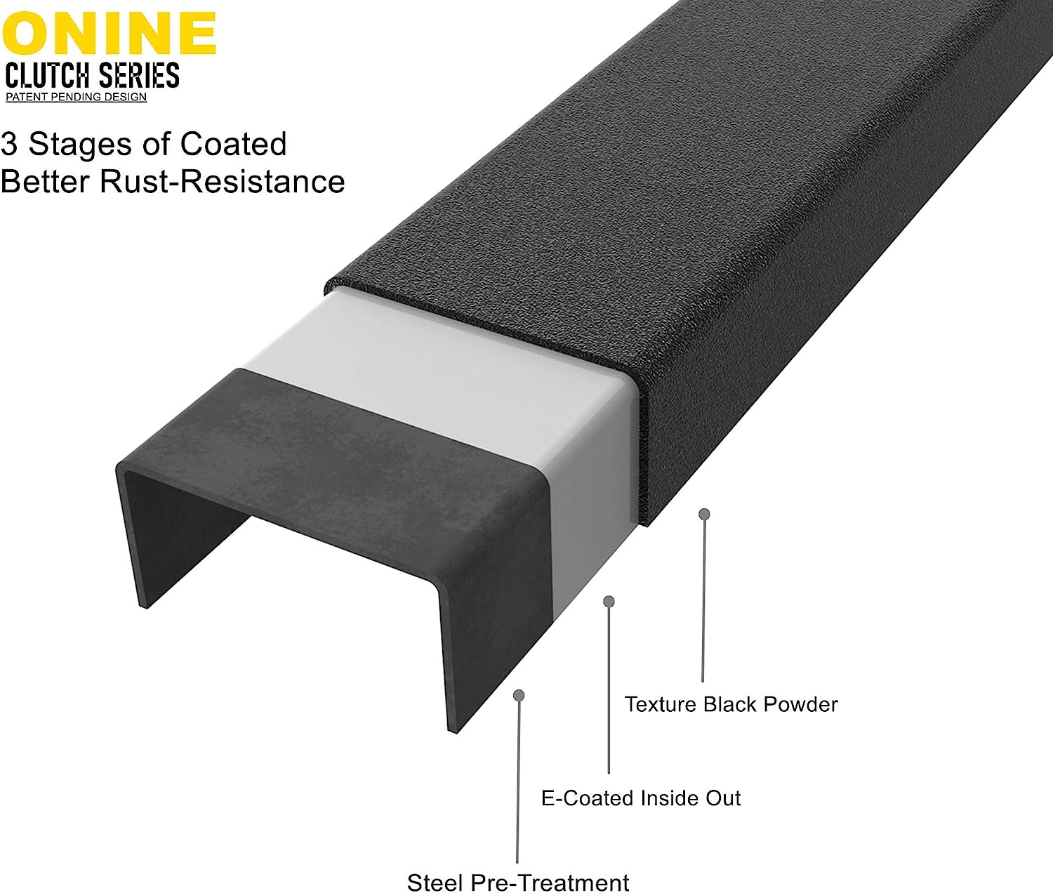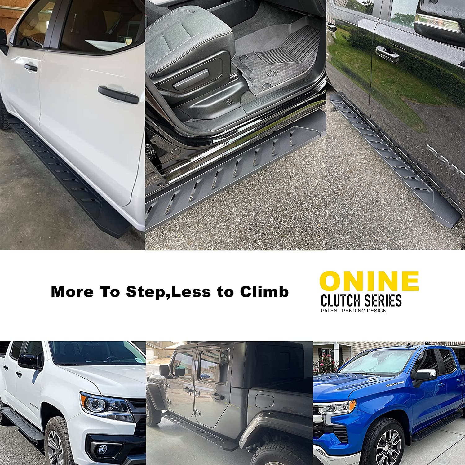 • ONINE Patent Design,Clutch Style Running Board Features a Rugged Steel Construction and Indented Louvers Along the Step Area for Maximum Traction, also Made to Drain off Rain,Dirt and other Debris.
