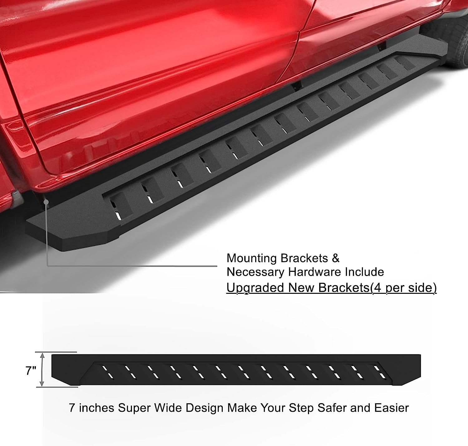 ONINE CRB830110 Clutch Running Boards Custom Fit 2019-2024 Chevy Silverado/Gmc Sierra 1500 & 2020-2024 Chevy Silverado/Gmc Sierra 2500/3500 Crew Cab Side Step Nerf bar, 7" Wide Texture Black