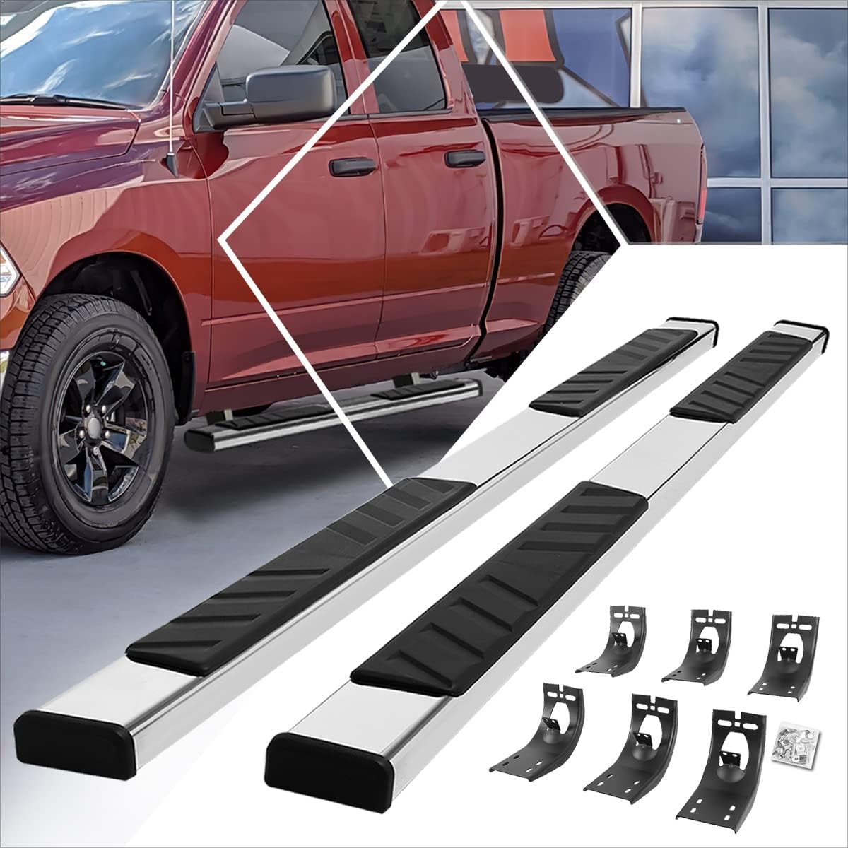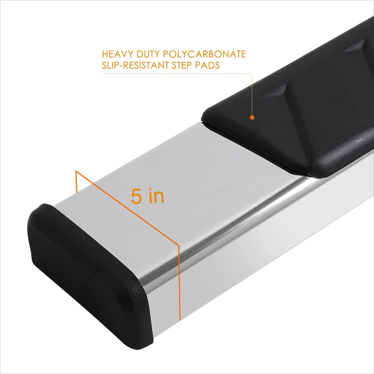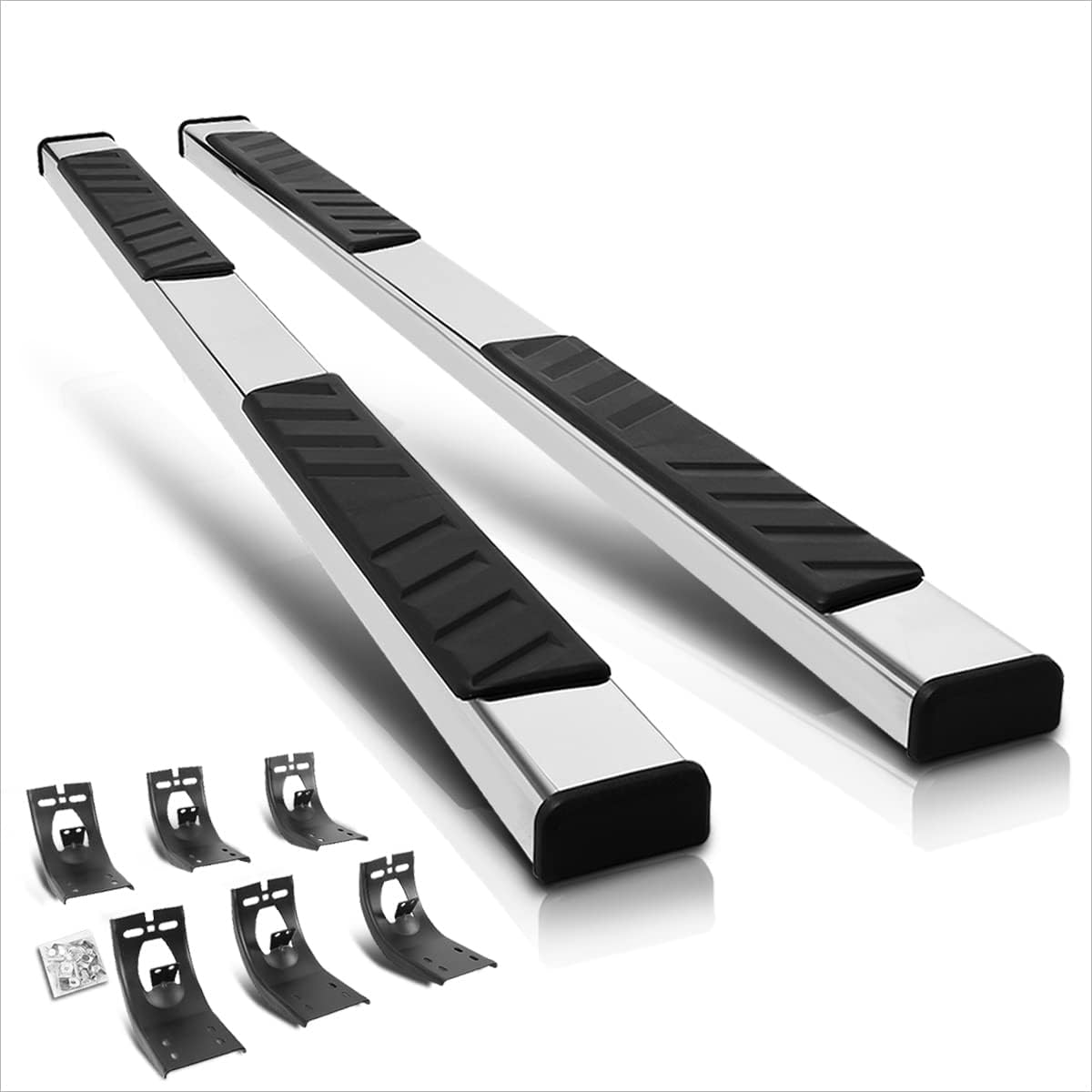 Running boards give your ride a massive boost when it comes to look and utility. Combining the stylish appearance and rugged looks, these inventive running boards are the ideal way to upgrade your truck or SUV. Constructed from high quality grade aluminum frames, you can be sure this running board will withstand the roughest of weather conditions as well as the test of time. They are built tough and are highly corrosion resistant. Getting in and out of your vehicle is easy with the large non-skid molded pads that ensure secure footing. No drill installation! These running boards are very easy to install with the brackets fitting right into the existing factory holes. By not having to not drill in to your vehicle, your time and effort is saved by you.