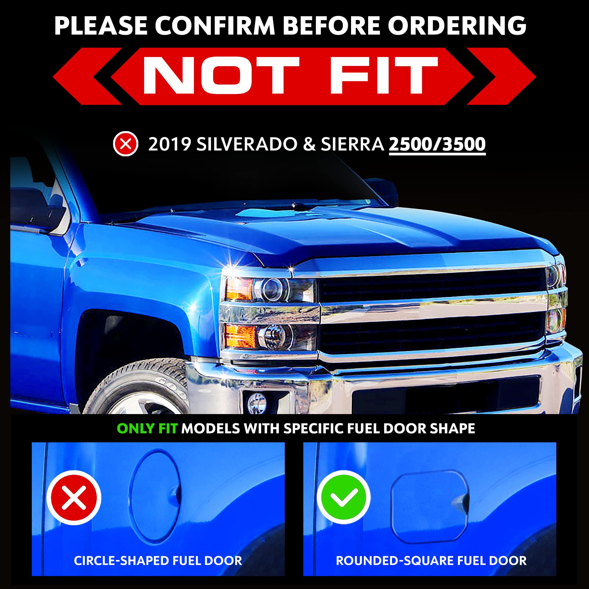 • FITMENT - Compatible with 2019-2024 Chevy Silverado / GMC Sierra 1500; 2020-2024 Chevy Silverado / GMC Sierra 2500 HD 3500 HD; 2022 Chevy Silverado 1500 LTD / GMC Sierra 1500 Limited; Diesel models with DEF tanks | Crew Cab [Cab Size Note: Only fit Crew Cab with 4 full-size doors. (See Image for more info)] | Not compatible for 2019 Silverado Sierra 1500 LD and Limited models