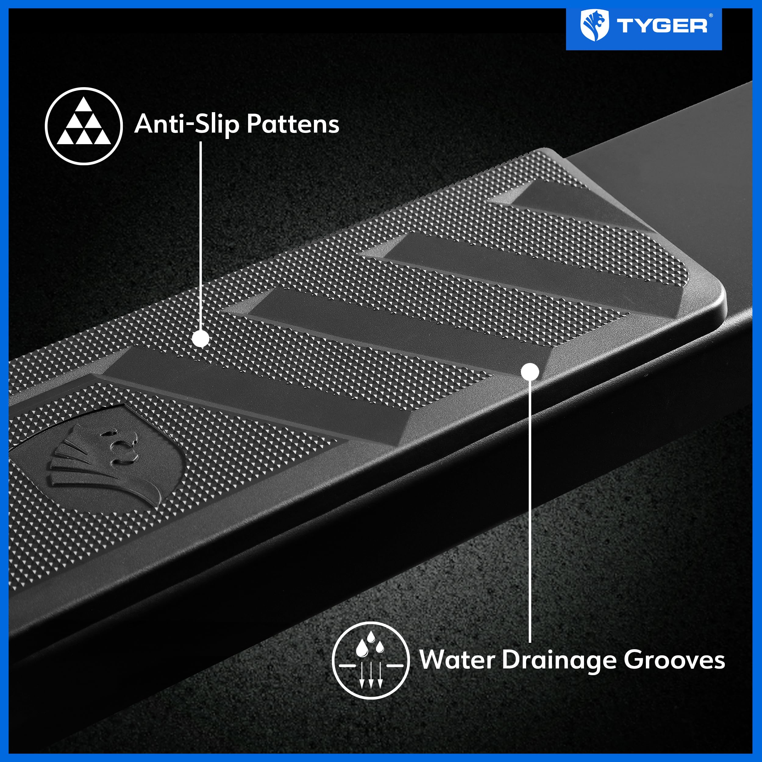 Details: THE CLASSIC - Tyger Riser's classic factory-style running board design is made of heavy-duty triangle mild steel tubing in black Powder-Coating. Risers come in 3 sizes: 4, 5 and 6 inch widths to suit everyone's needs.