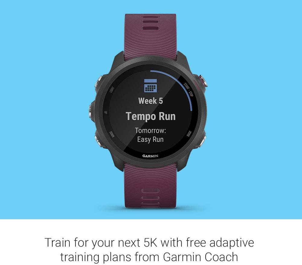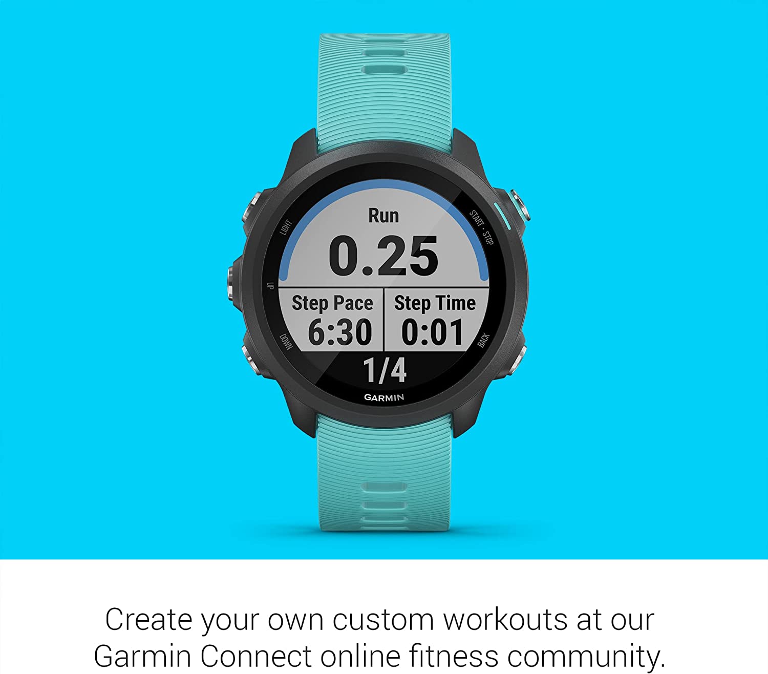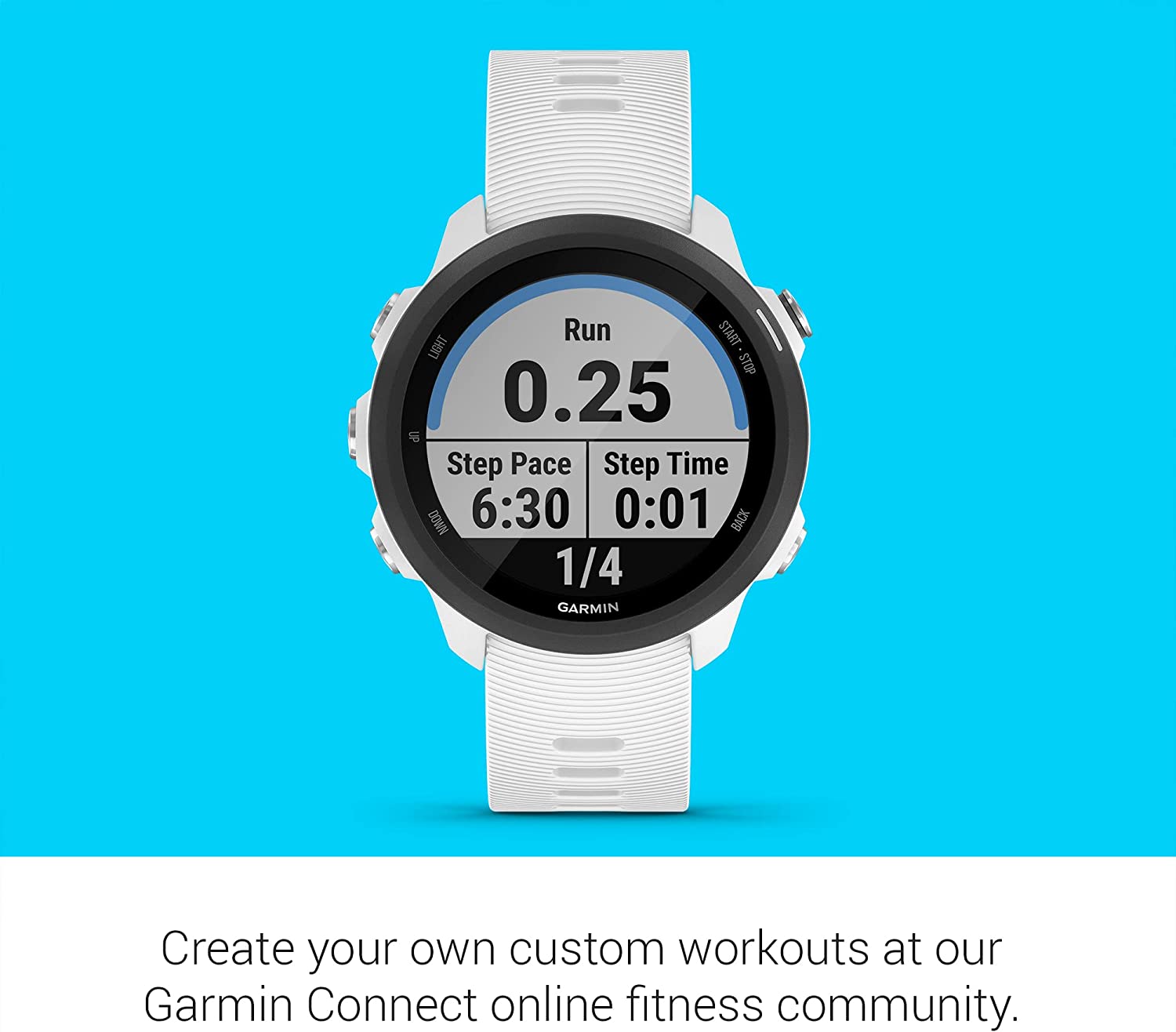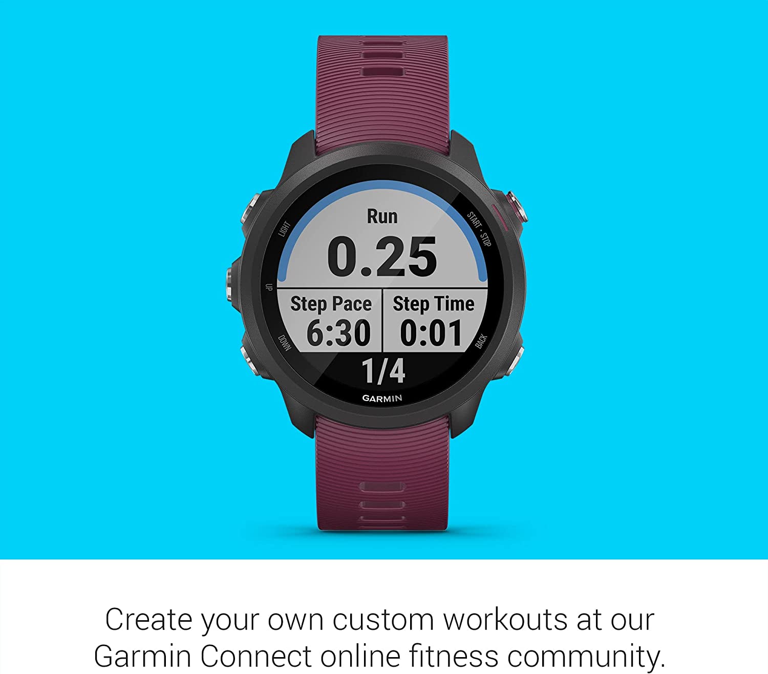 You do the running. Forerunner 245 Music does the thinking. It even gets to know you, mile after mile and song after song. This GPS smartwatch has storage for your favorite tunes, so you can keep moving to the music without having to lug your phone along. It also tracks your stats, crunches the numbers and gets to know all about your performance, your running form, your training history and even your goals. All you need to focus on is putting one foot in front of the other.