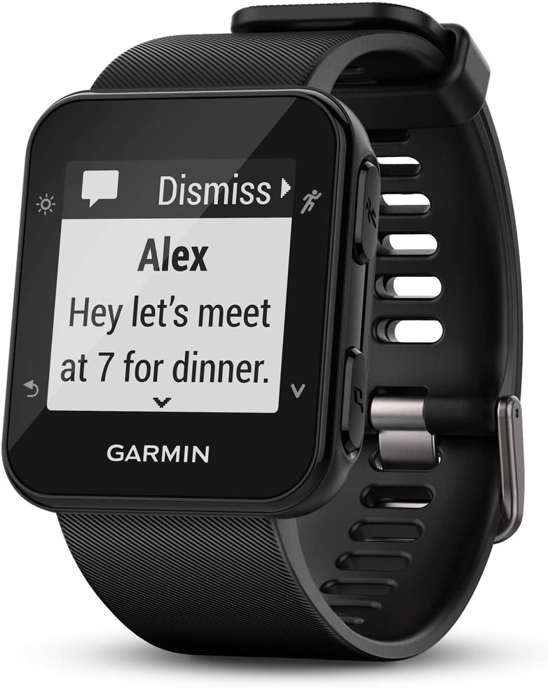 Easy-to-use GPS Running Watch with Wrist-based Heart Rate Monitors heart rate at the wrist, all day and night, using Garmin Elevate wrist heart rate technology Built-in GPS tracks how far, how fast and where you run Connected features: smart notifications, automatic uploads to Garmin Connect, live tracking and music controls All-day activity tracking counts steps, calories and intensity minutes and reminds you when to move Automatically uploads your data to Garmin Connect, our free online fitness community where you can join challenges, receive insights and share your progress as you meet your goals Run Your Heart Out Forerunner 35 is slim and lightweight - perfect for daily runs, training and racing. It features built-in wrist-based heart rate as well as GPS that tracks your distance, pace, intervals and more. And since all these stats are captured by the watch, your watch is all you need - no phone, no chest strap. Just put on Forerunner 35 and go. Stay Connected When paired with your compatible smartphone, Forerunner 35 offers the convenience of smart notifications right on your wrist along with a variety of other connected features makes it easy to live and run without one interrupting the other. Stay connected to family and friends with the live tracking feature, which lets them follow your runs in real time. Forerunner 35 also keeps you up to date with automatic software updates, and it allows for music controls and more on your device. Customize and Connect Forerunne...