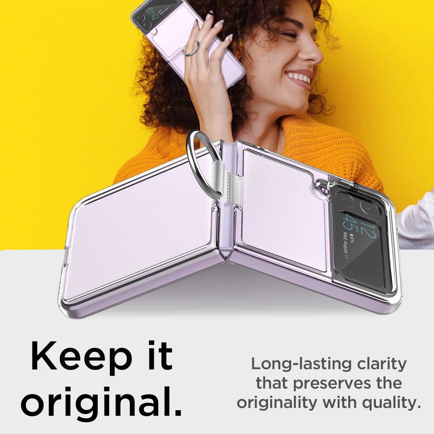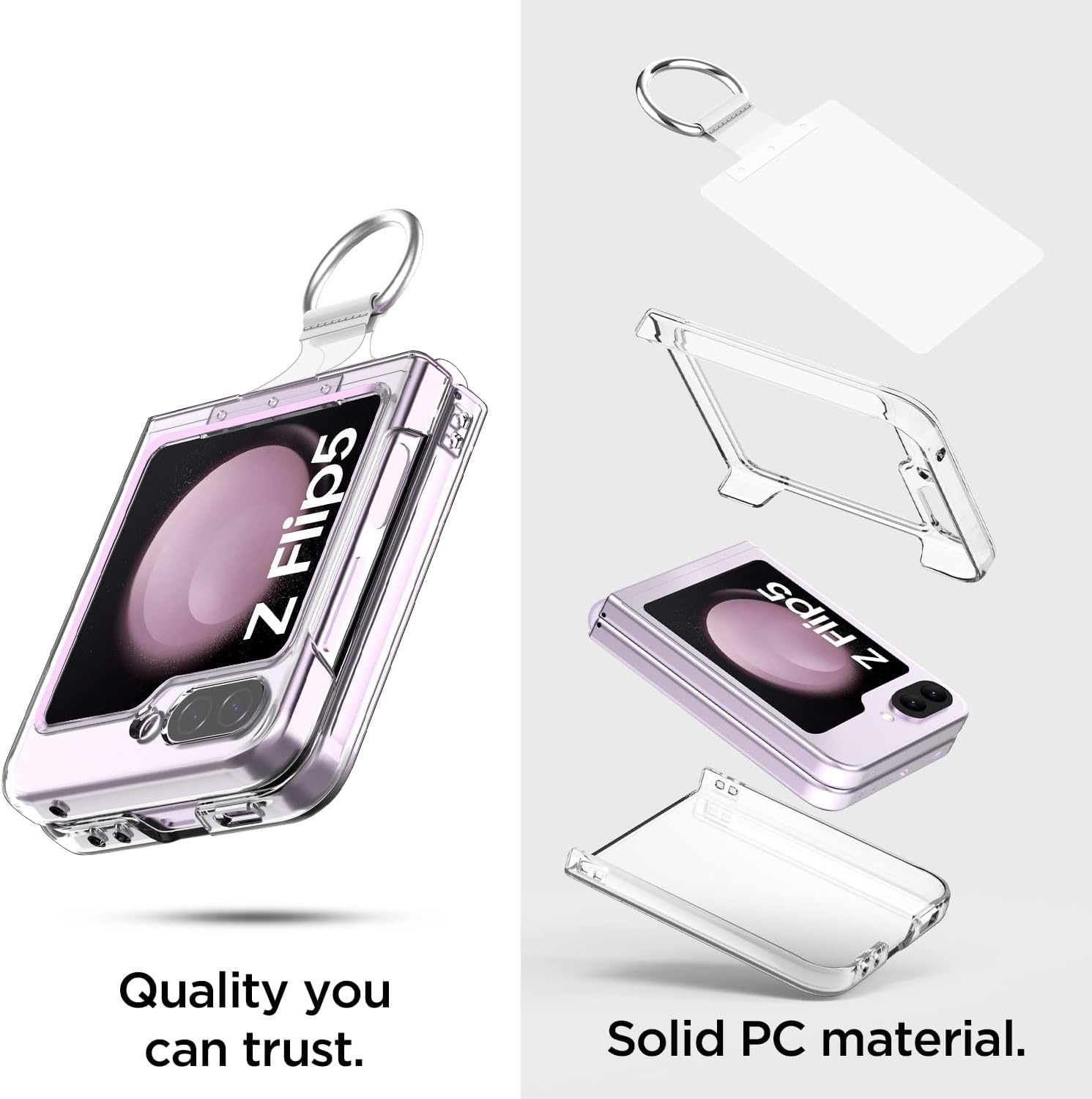 • CRYSTAL CLEAR & ANTI-YELLOWING: This Samsung Galaxy Flip 5 case made with high-grade Germany tough PC clear back, more scratch-resistant and anti-yellowing