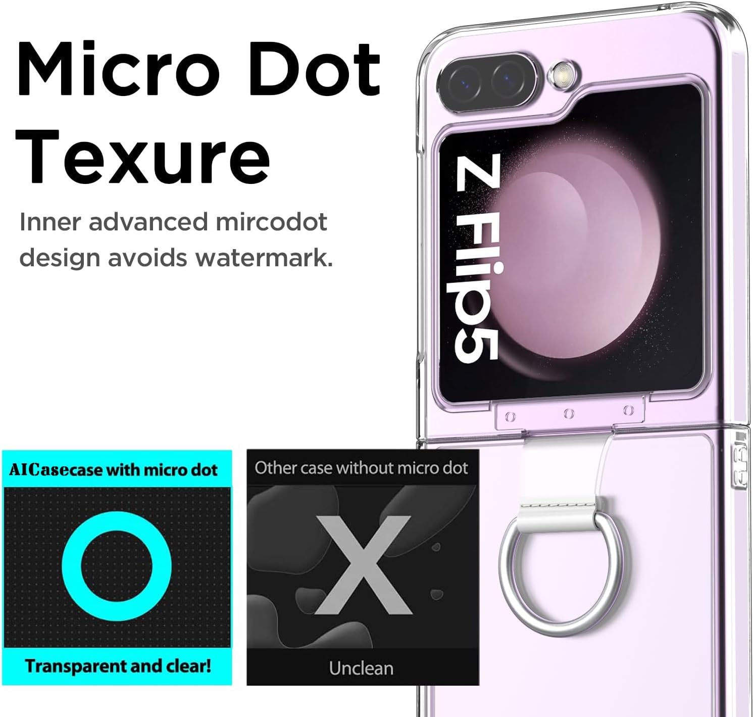 • RAISED CAMERA & SCREEN PROTECTION: The Samsung Flip 5 case with raised bezels offer extra protection for screen and camera, inner advanced mircodot design avoids watermark