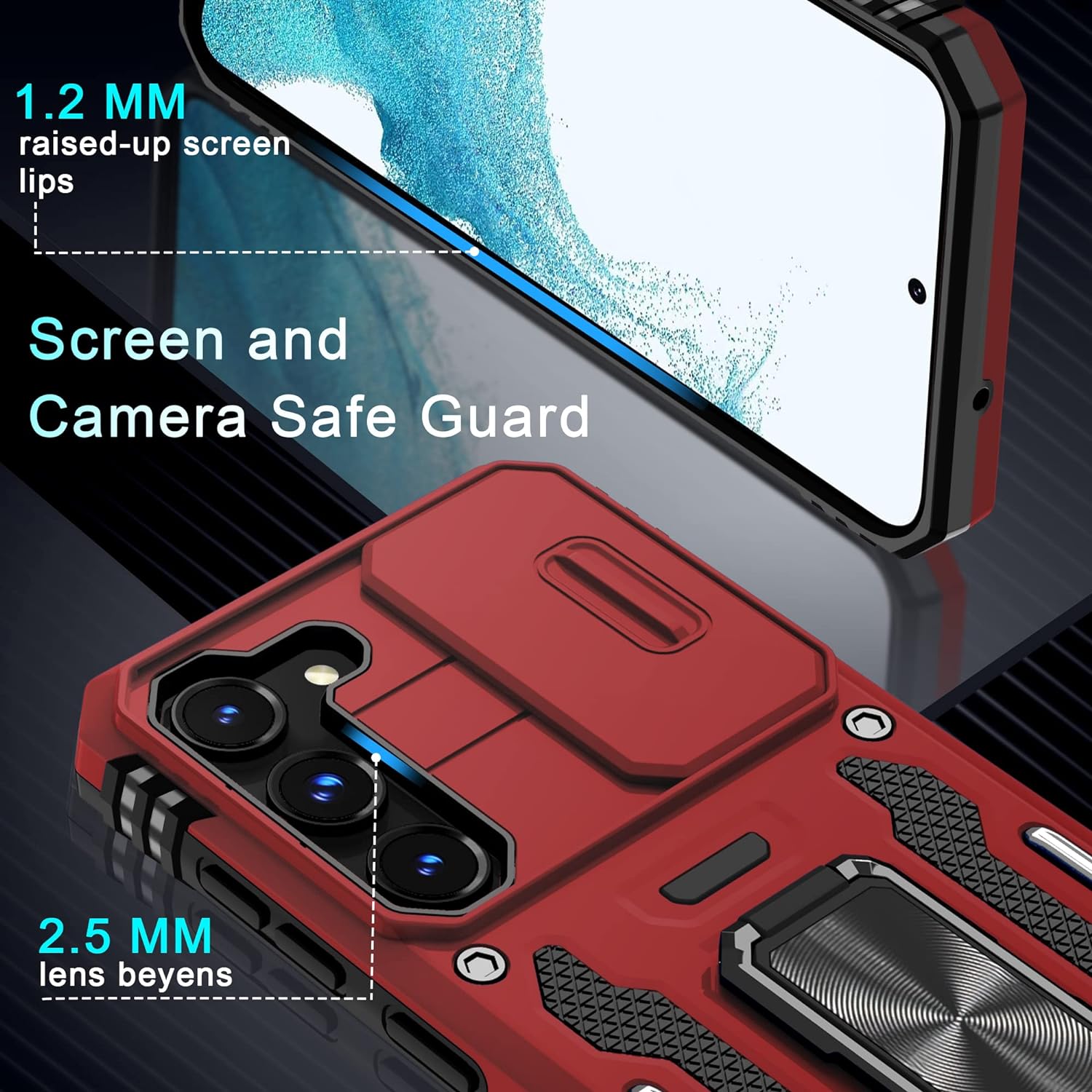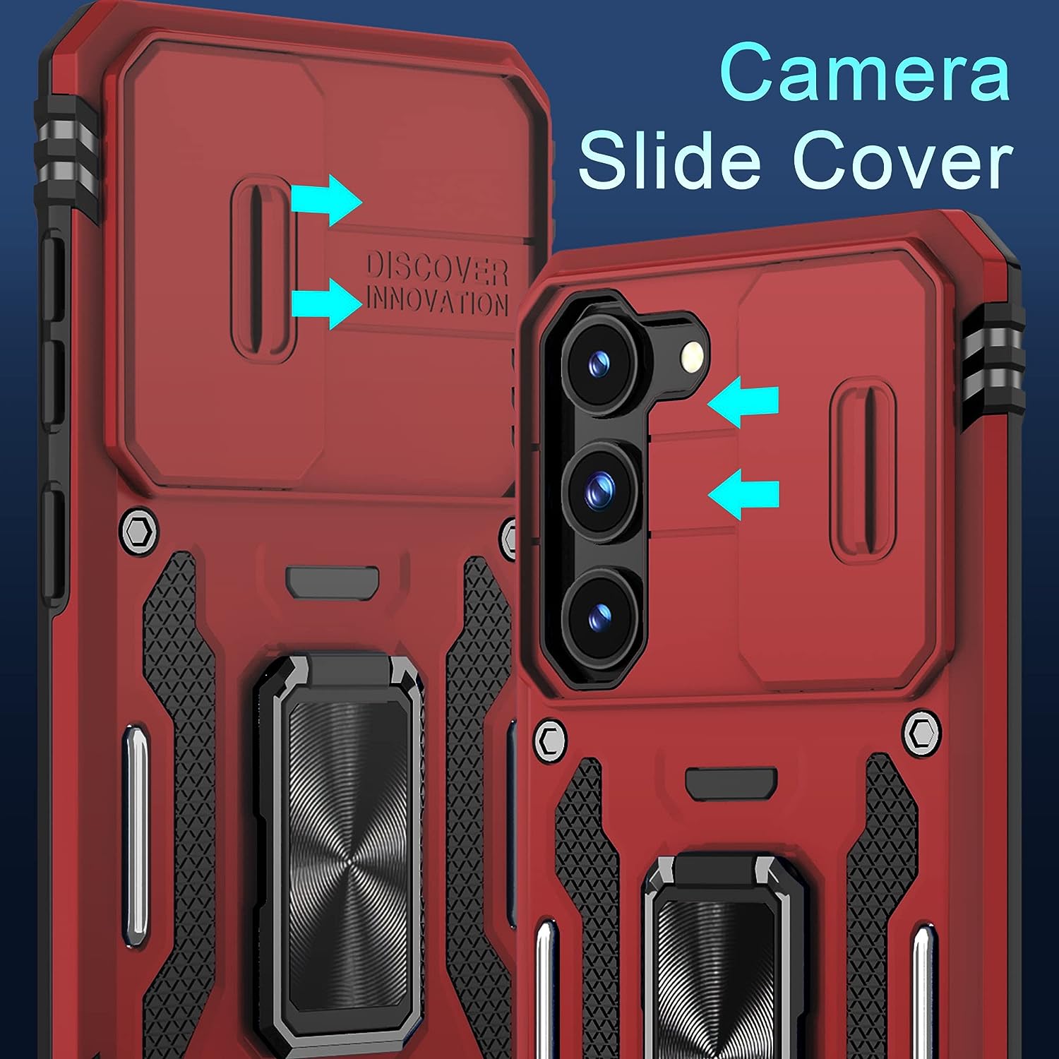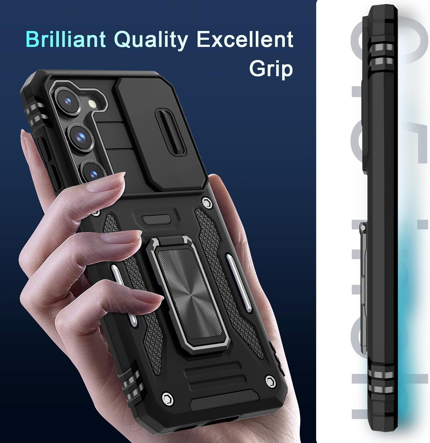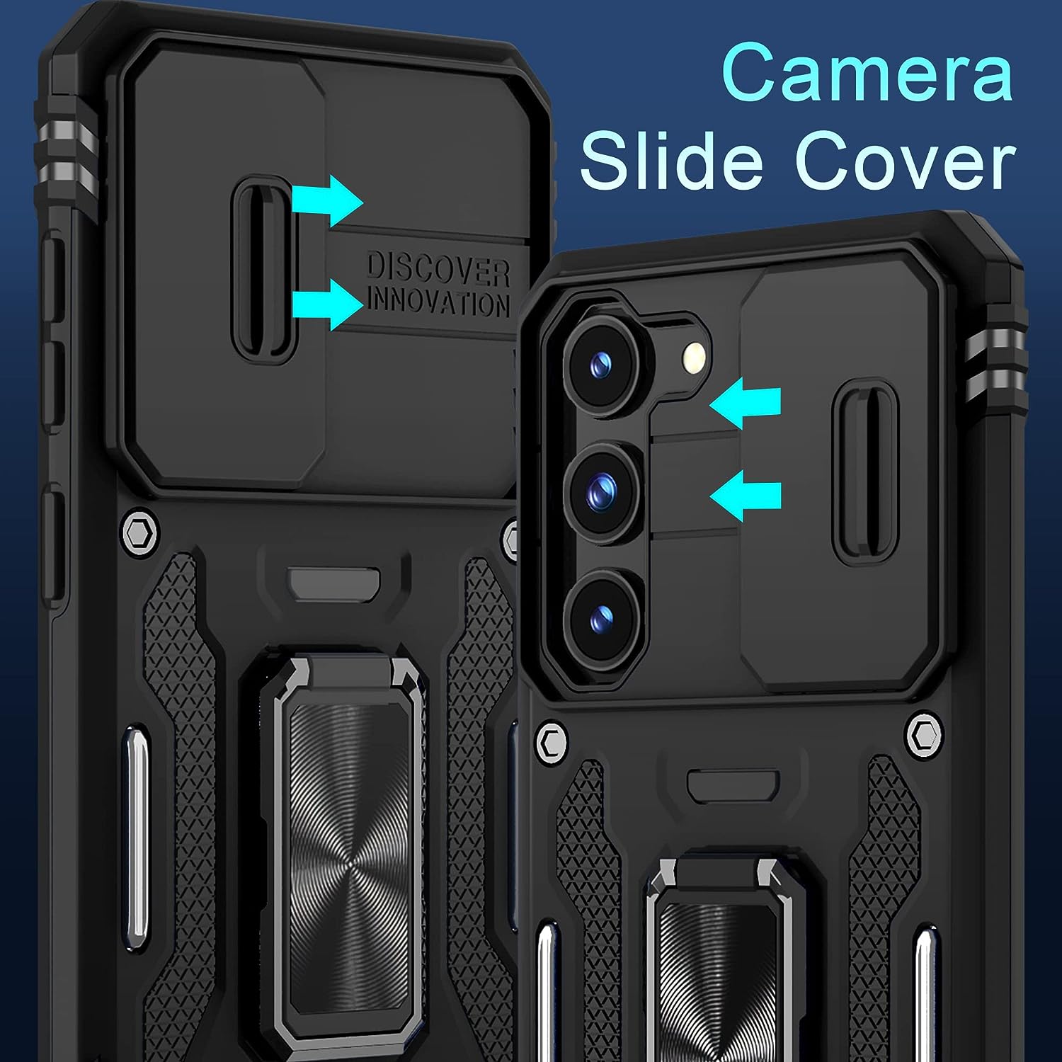 • ? Camera & Screen Protection: Sliding camera cover protect the Samsung S23 5G case camera lens from getting scratched and scuffed.Subtly enhanced 1.8 mm screen lips and glass screen protector provide the screen extra and comprehensive protection.Ensuring every aspect of your phone is protected with uniquely!