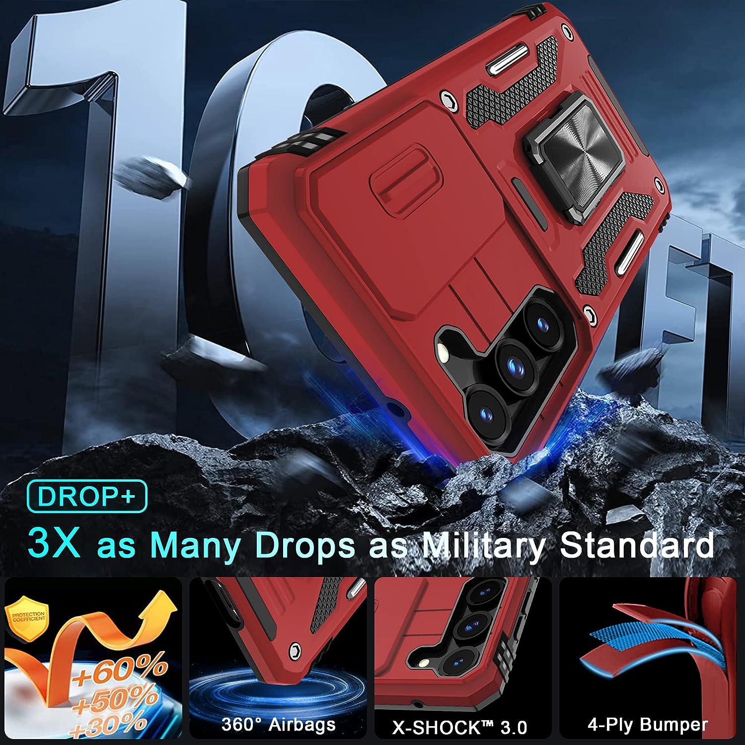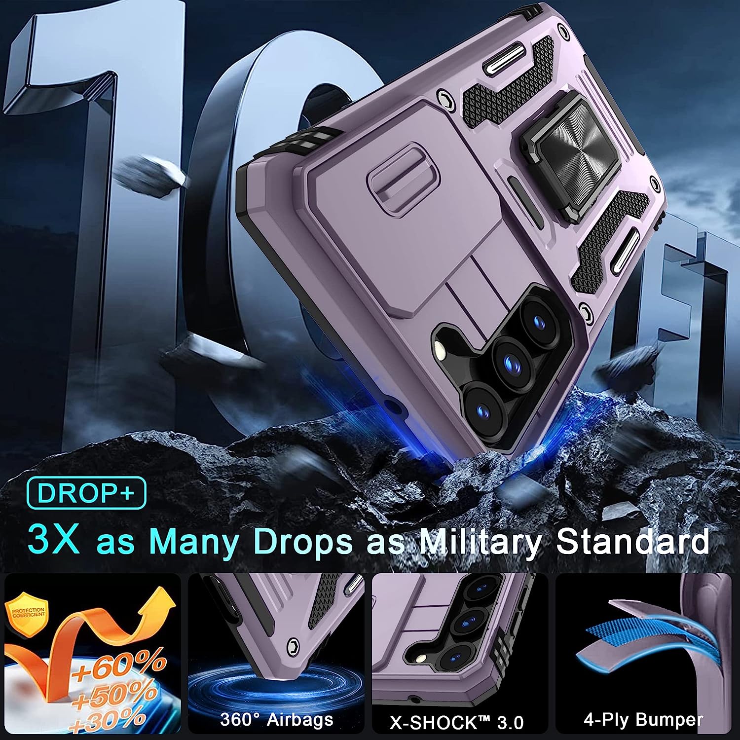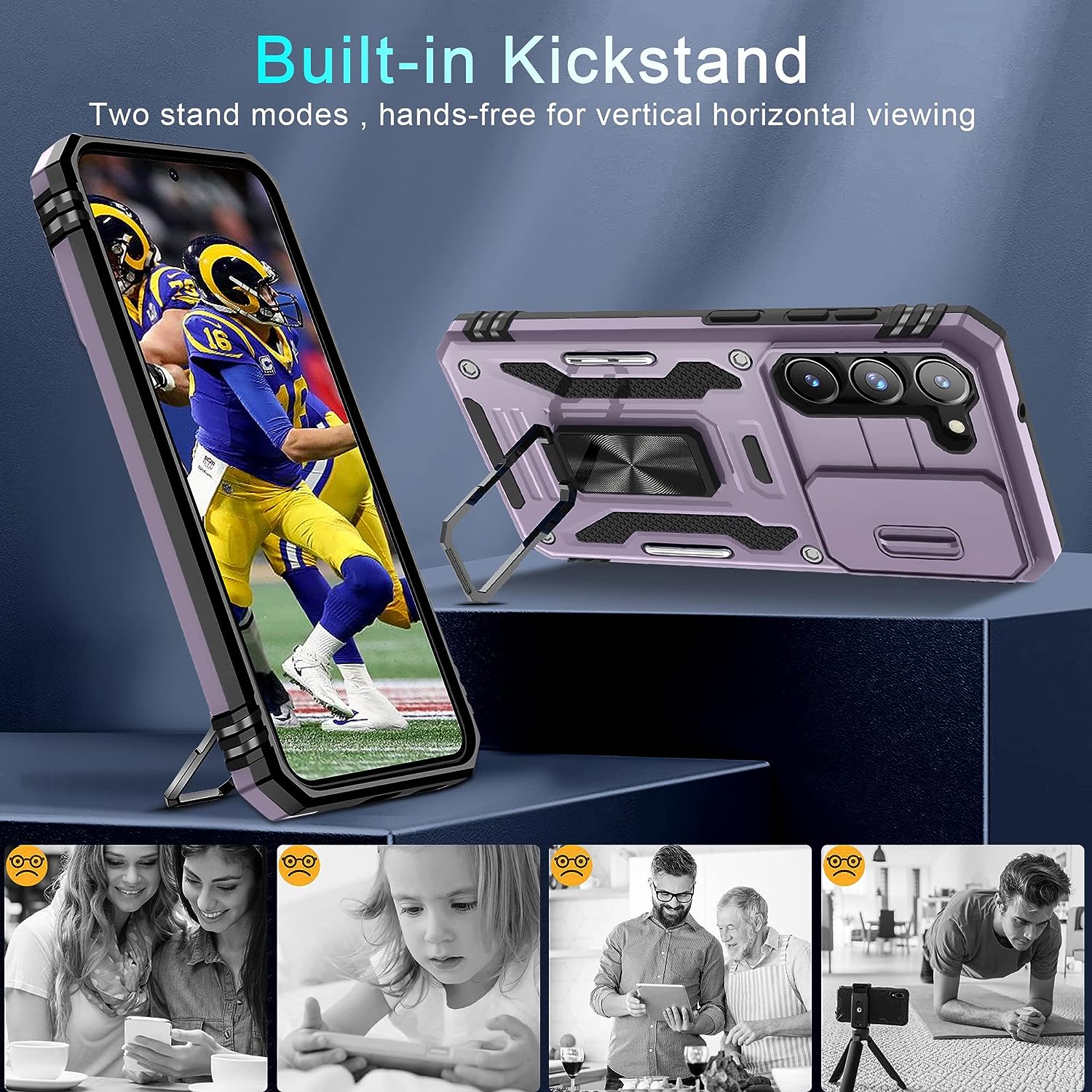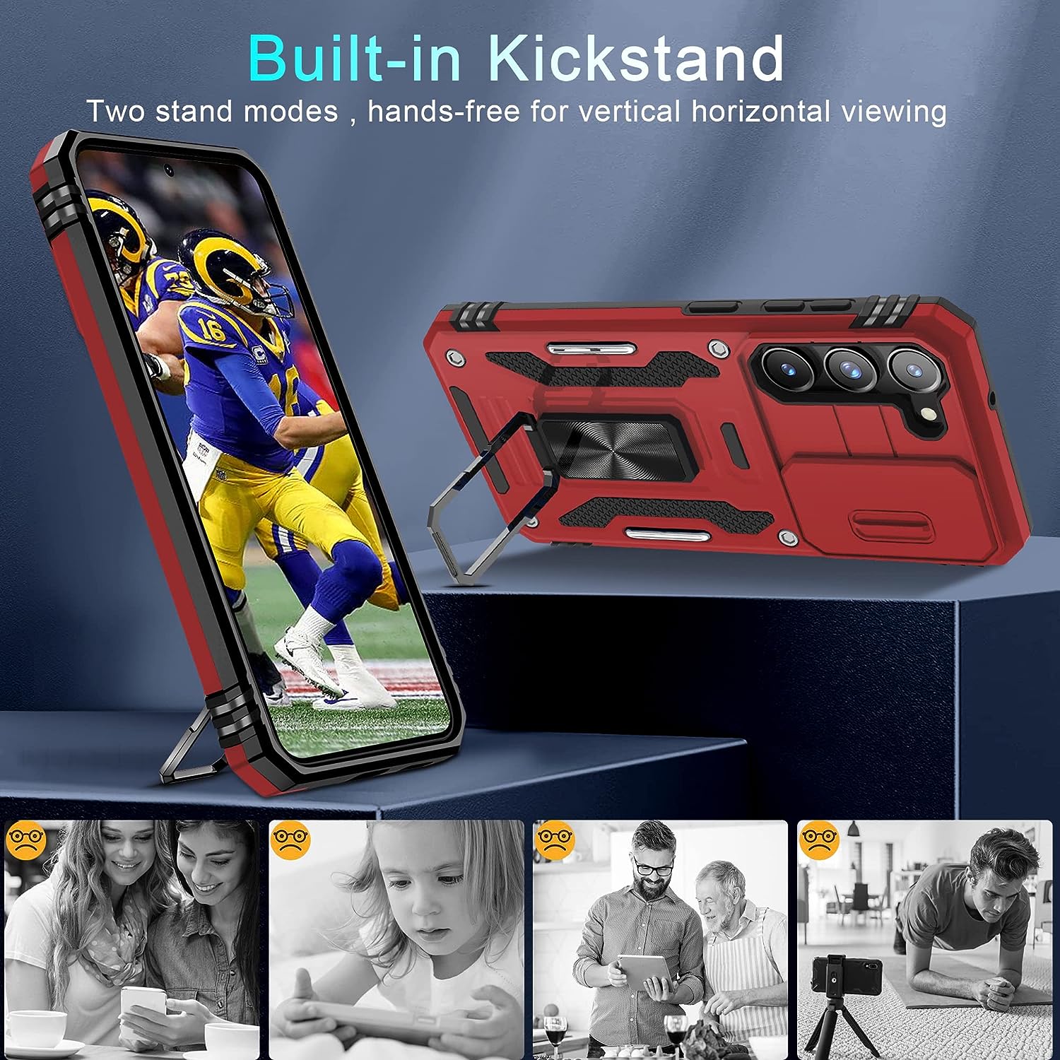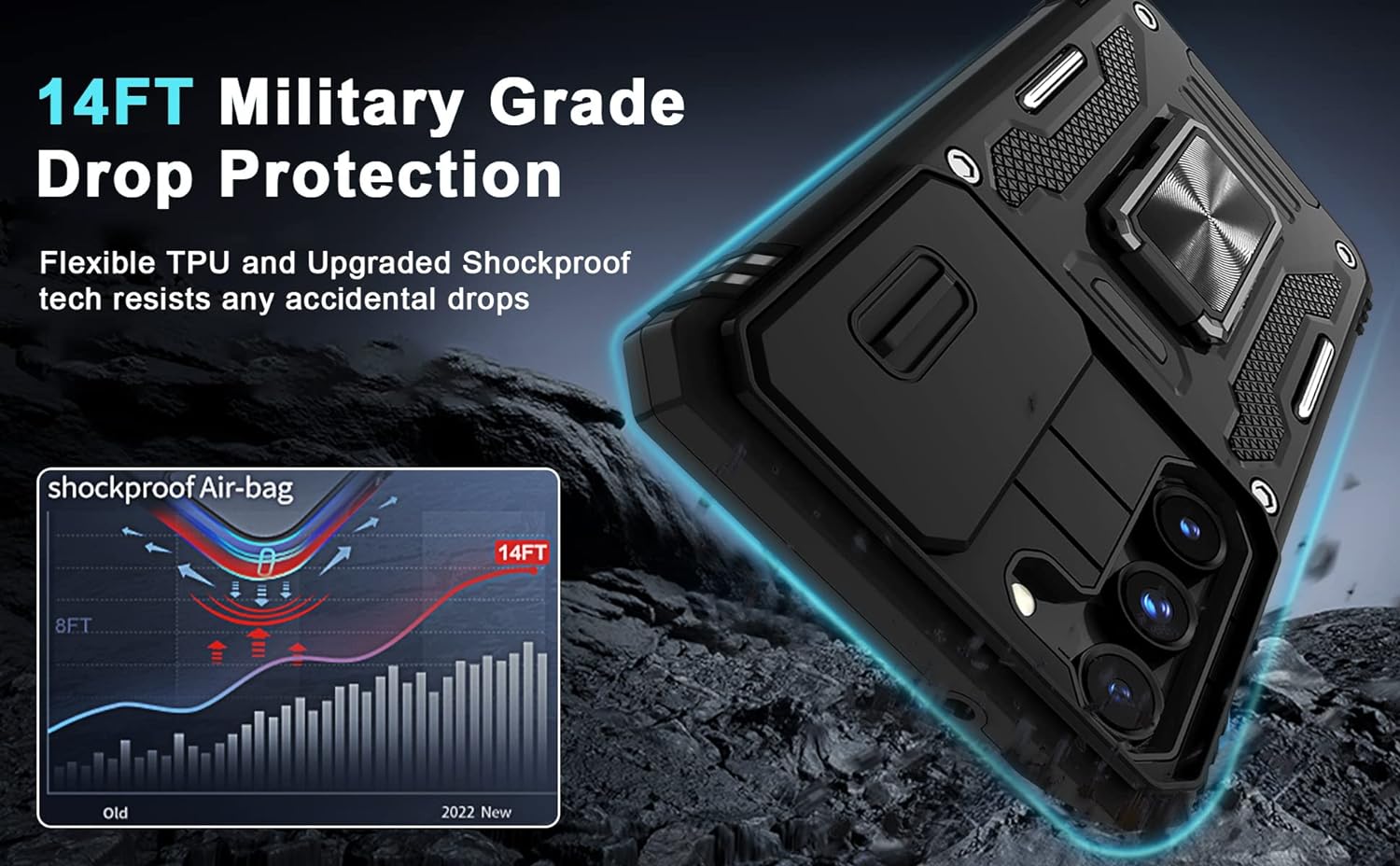 • ? Camera & Screen Protection: Sliding camera cover protect the Samsung S23 5G case camera lens from getting scratched and scuffed.Subtly enhanced 1.8 mm screen lips and glass screen protector provide the screen extra and comprehensive protection.Ensuring every aspect of your phone is protected with uniquely!