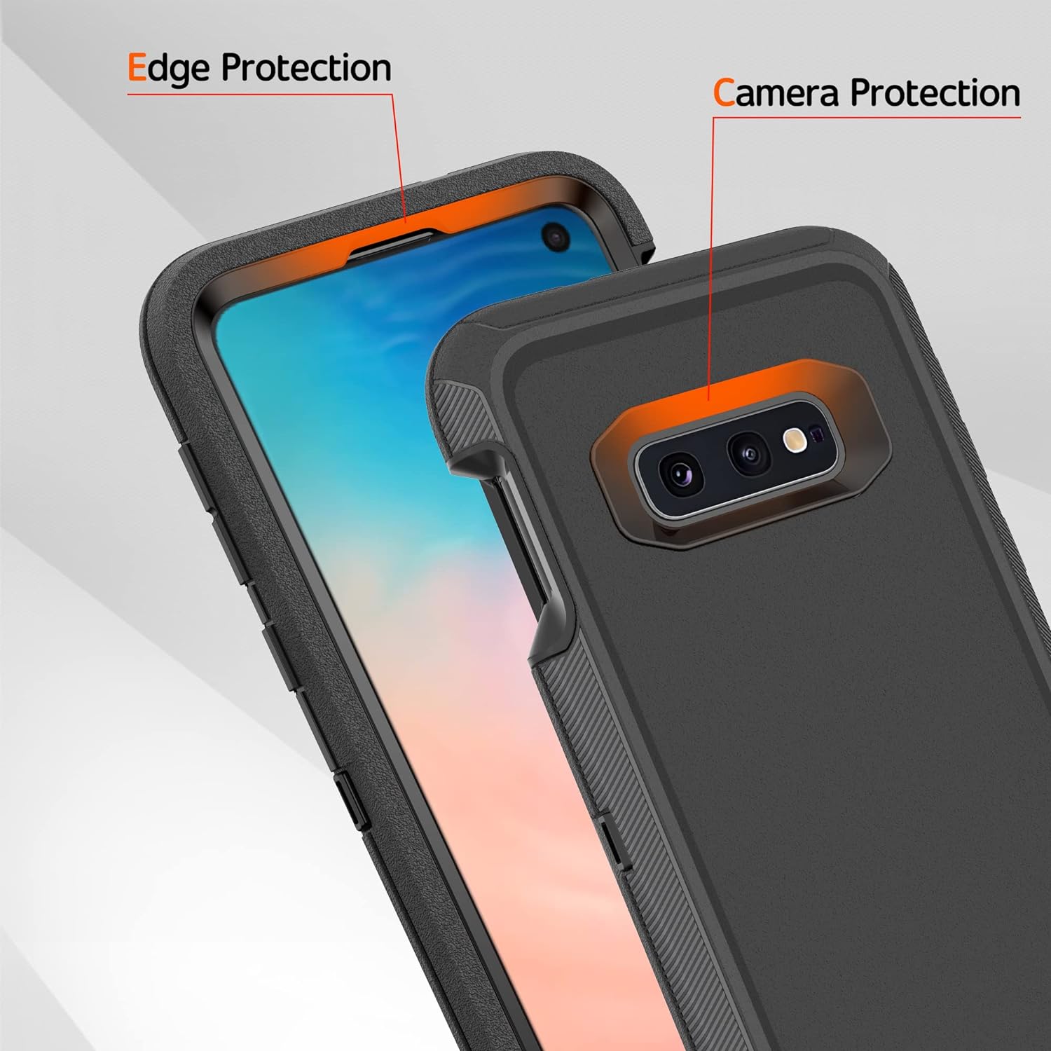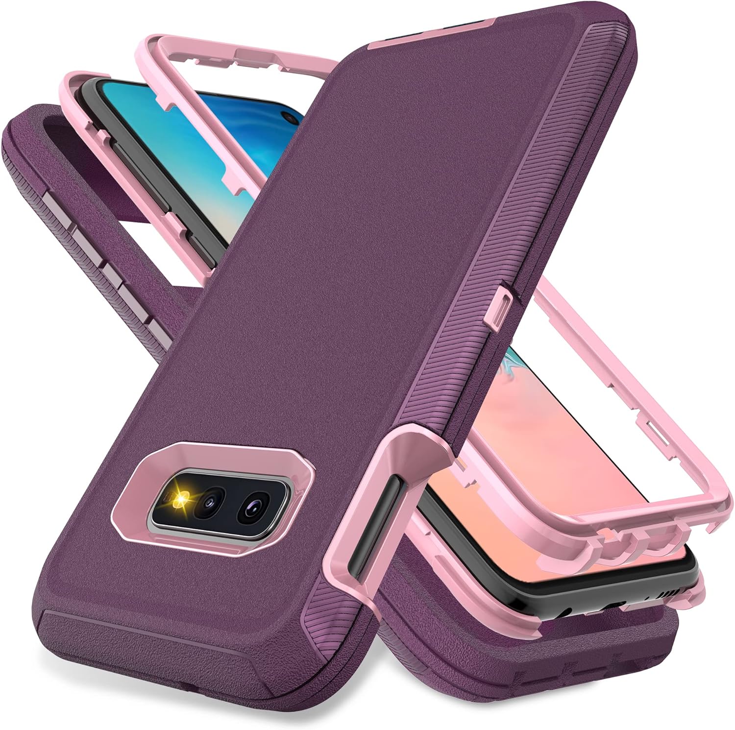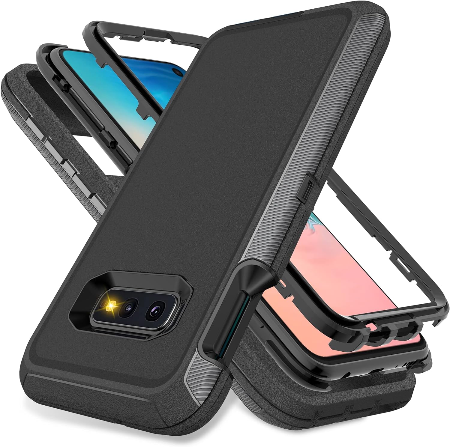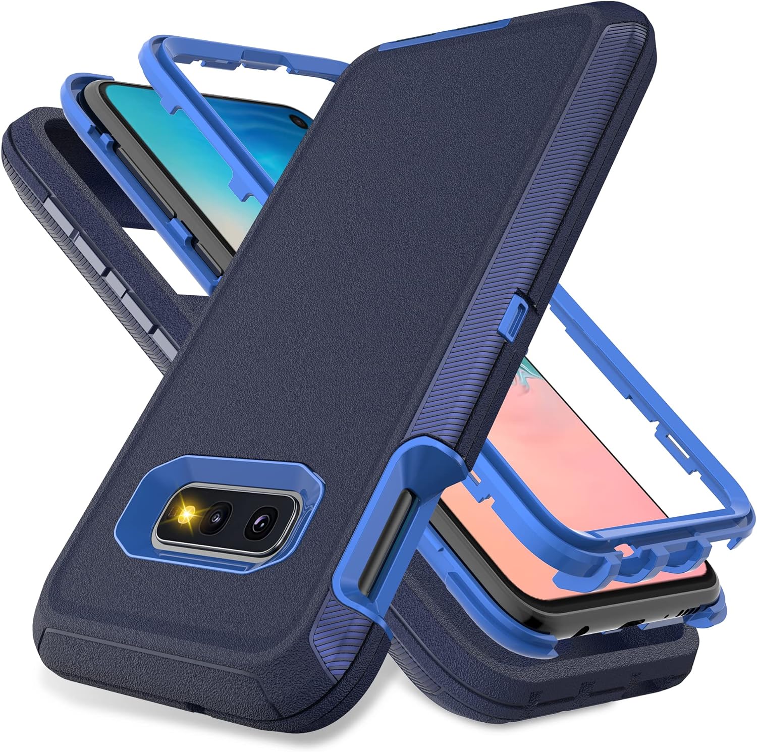 • [Multi-layer Protection] ❗❗❗ If you don't know how to install the phone case please left slide the main product image to refer to our installation tutorial video.❗❗❗ Samsung galaxy S10e case features a unique 3-in-1 removable design, this full-body rugged heavy-duty case facilitates safe protection of your S10e from serious drops, scratches, etc. It protects your phone from scratches, bumps and shocks in all directions.