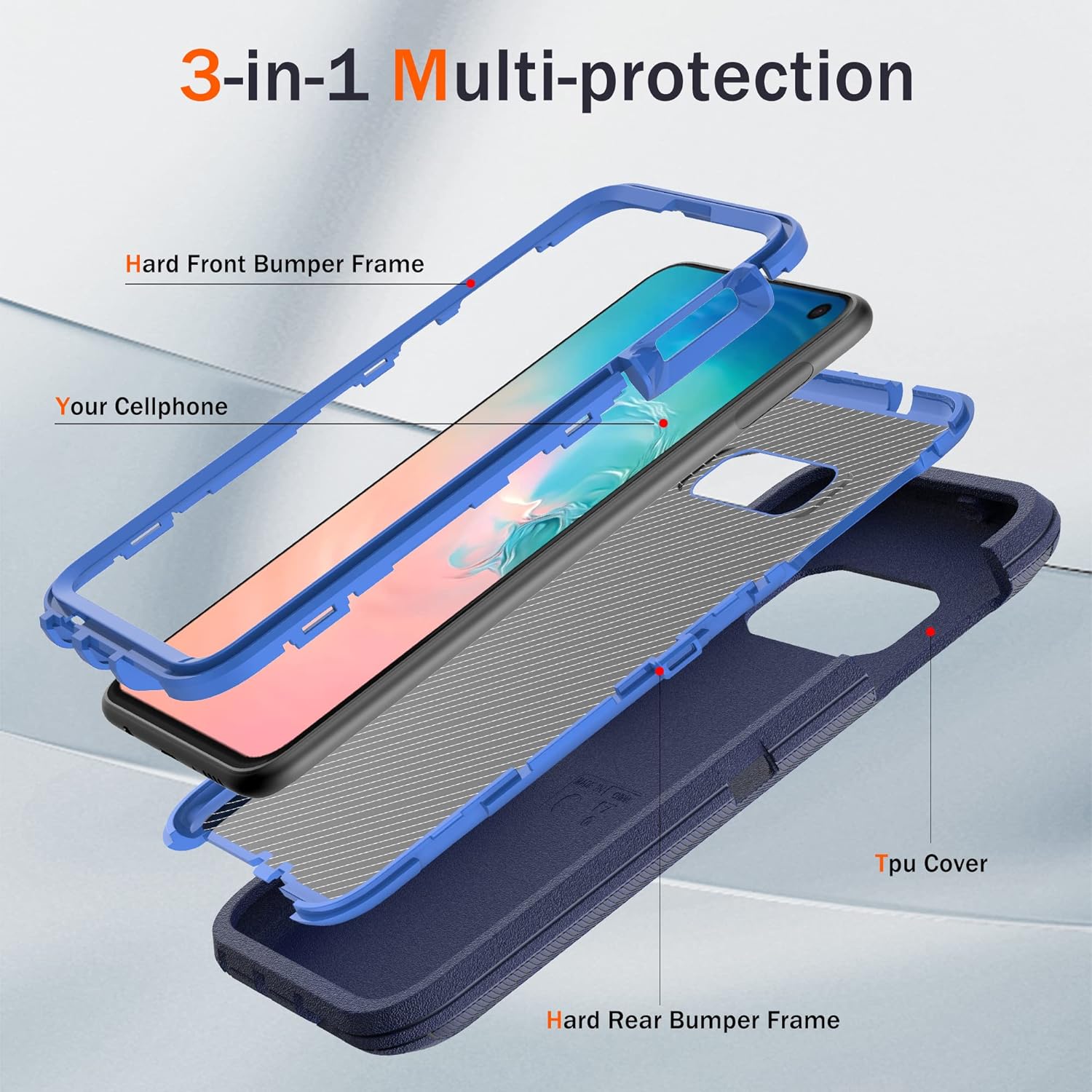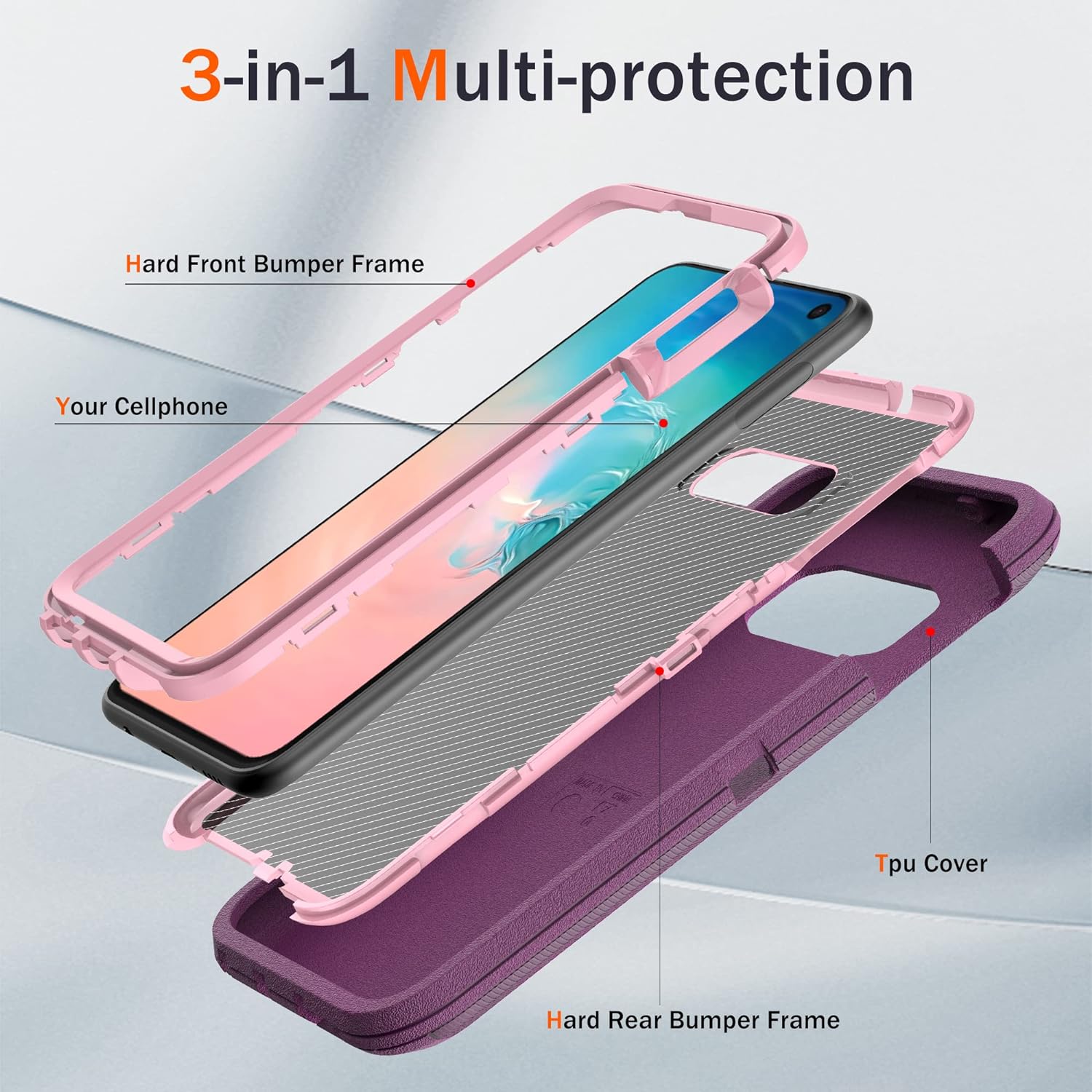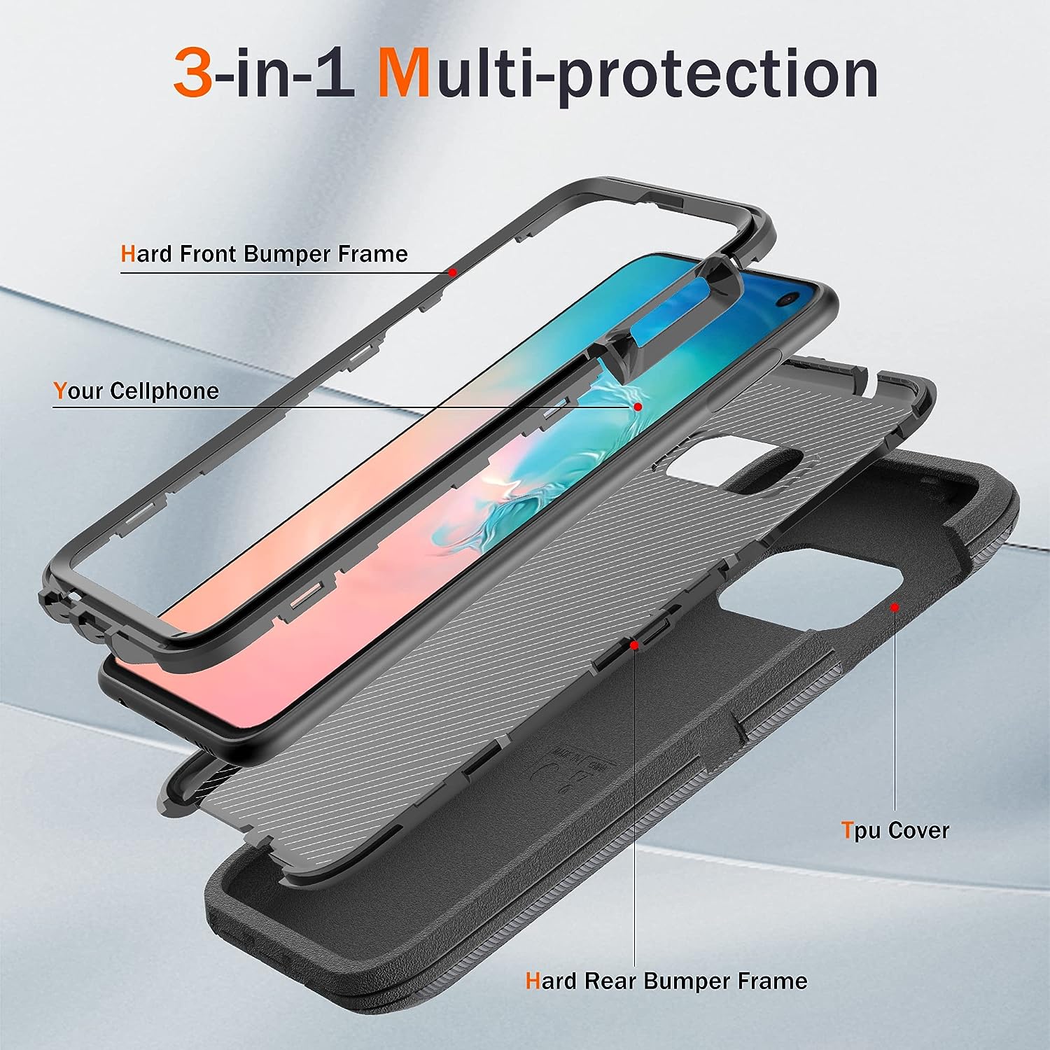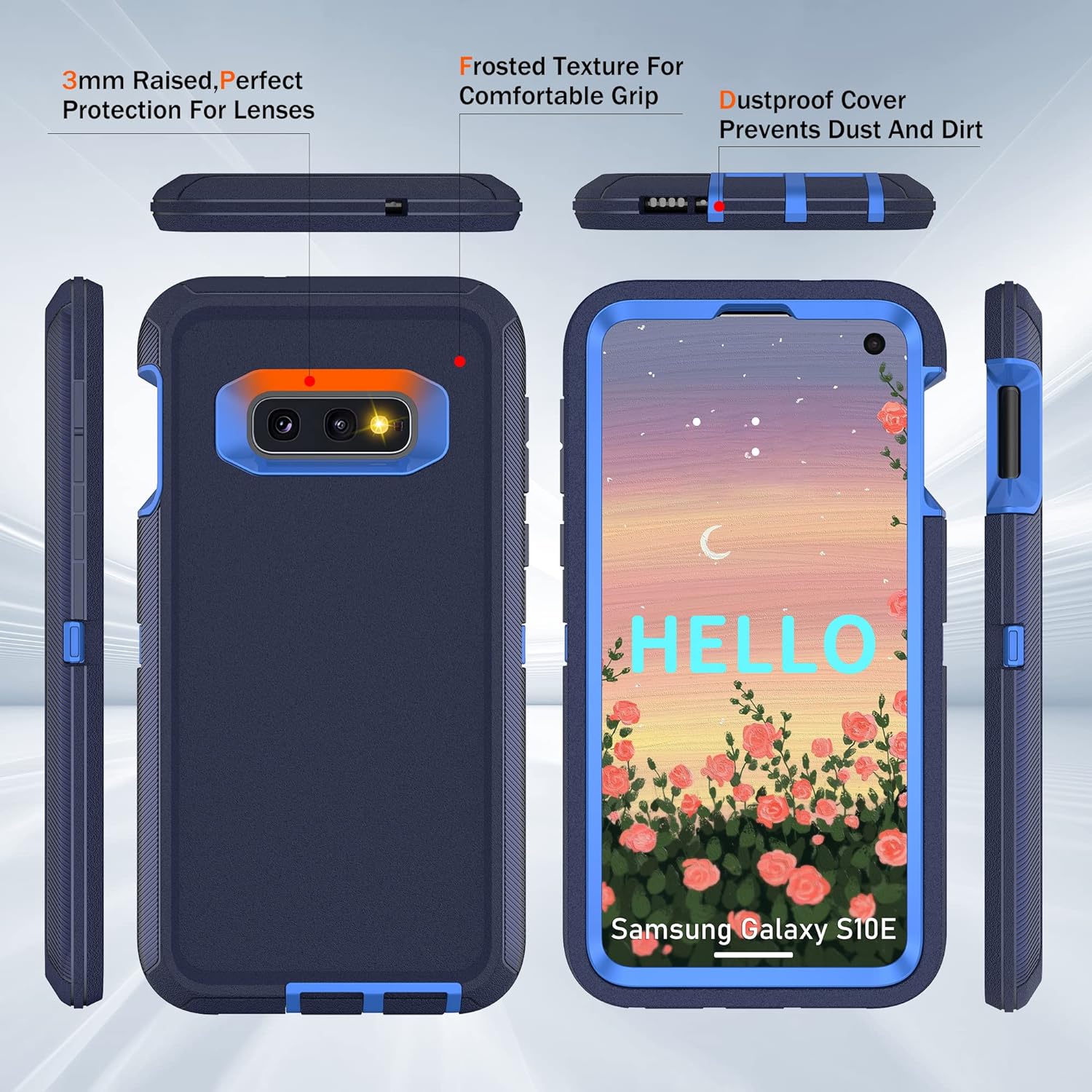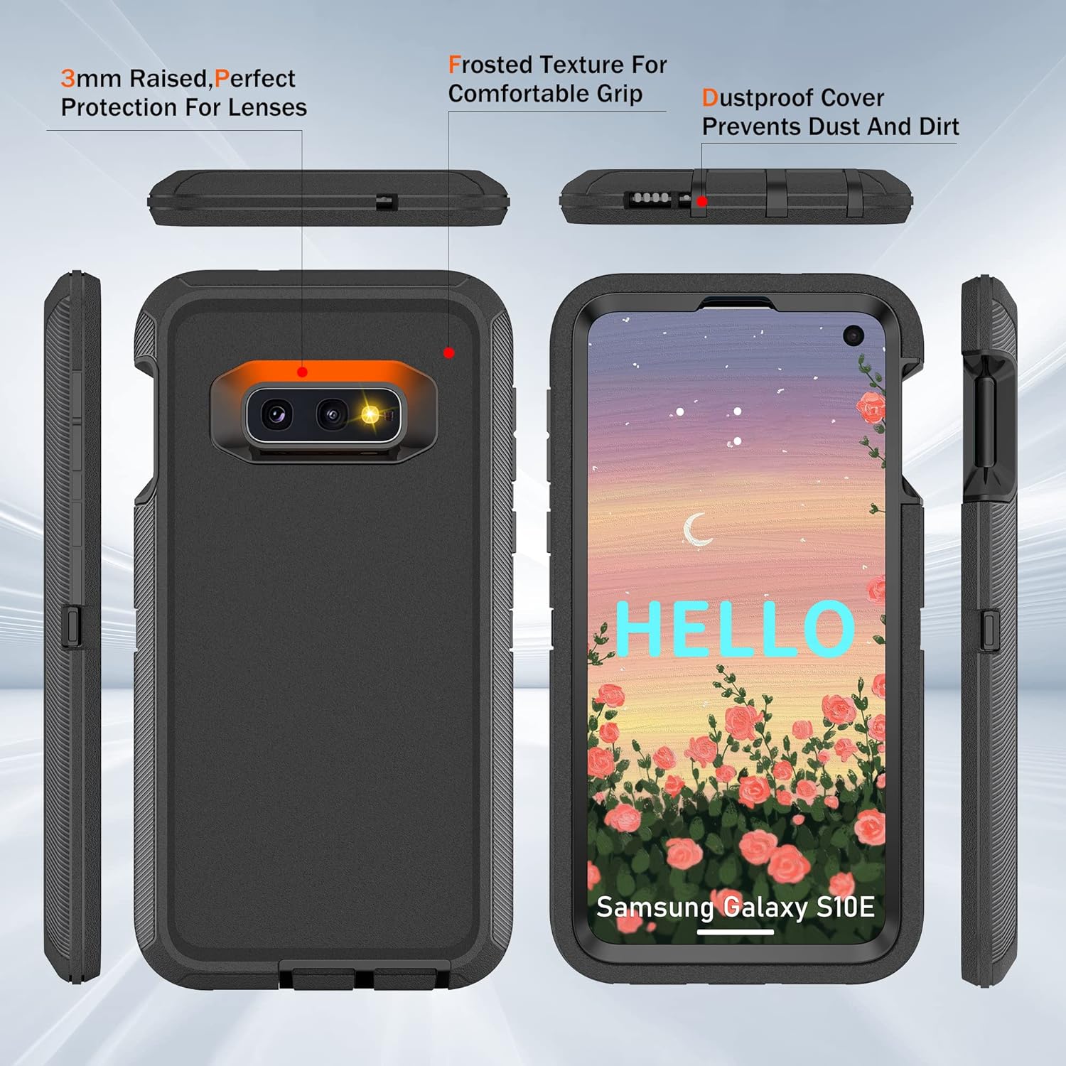 • [Multi-layer Protection] ❗❗❗ If you don't know how to install the phone case please left slide the main product image to refer to our installation tutorial video.❗❗❗ Samsung galaxy S10e case features a unique 3-in-1 removable design, this full-body rugged heavy-duty case facilitates safe protection of your S10e from serious drops, scratches, etc. It protects your phone from scratches, bumps and shocks in all directions.