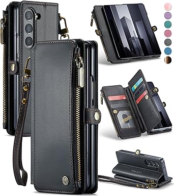 Defencase Wallet Case Compatible with Samsung Galaxy Z Fold 6 with RFID Blocking Card Holder & S Pen Holder Slot PU Leather Magnetic Snap Flip Zipper Strap Phone Case Fit for Galaxy Z Fold 6, Black