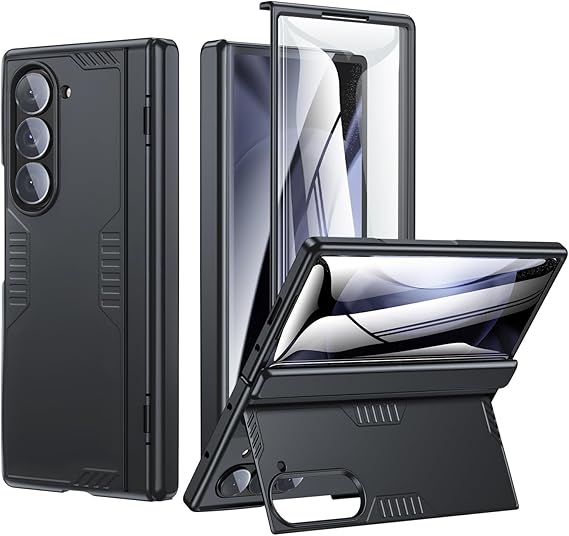 for Samsung Galaxy Z-Fold-6 Case: [Hidden Kickstand][Wireless Charging] Slim Hinge Lightweight Stand Case with Screen Protector - Soft Protective Phone Cover for Z Fold 6 5G 2024 Black