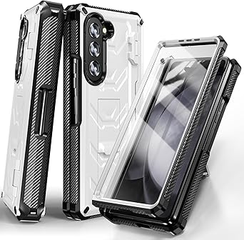 Samsung Galaxy Z Fold 5 Case with Hinge Protection, S Pen Holder & Kickstand, Drop Protection Case with Built-in Screen Protector for Z Fold 5/W24, Wireless Charging Compatible, White