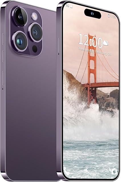 Huness I15 Pro MAX Smartphone Unlocked Cell Phone, Battery 6800mAh 6.8 HD Screen Unlocked Phone, 6+256GB Android 13 with 128GB Memory Card, Dual SIM/5G/Fingerprint Lock/Face ID (Purple, 6+256)