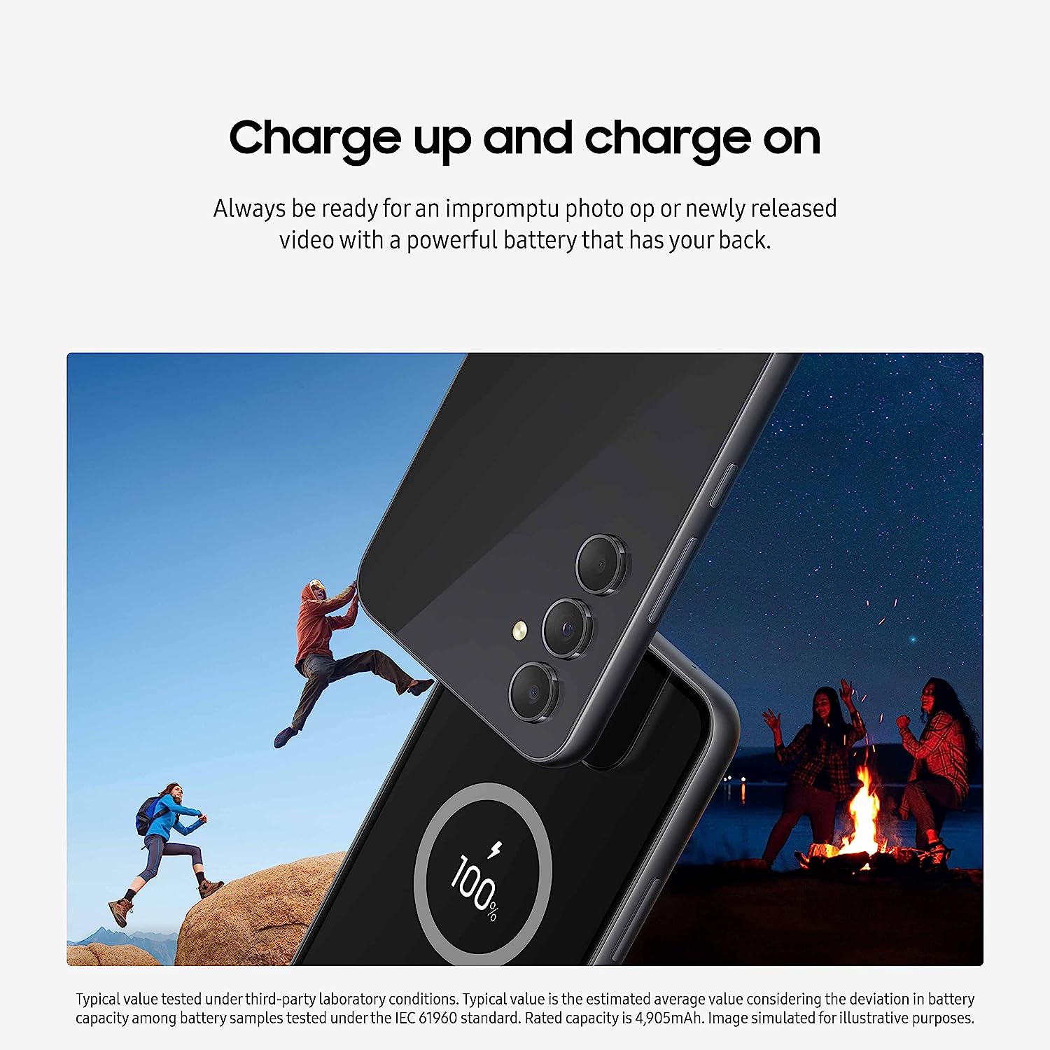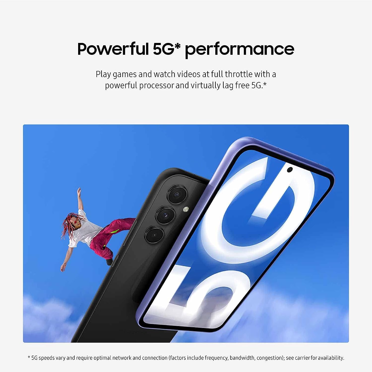 Whether you’re capturing videos while out with friends or reading online, Galaxy A54 5G helps you experience the most in life. Complete with a refined design, 5G**** performance and pro-grade camera, our best Galaxy A Series phone makes enjoying your favorite movies and taking incredible pictures a breeze. Jump in and out of activities with a smartphone that is water- and dust-resistant, and confidently go throughout your day knowing your data is secured by Samsung Knox. Packed with awesome features, Galaxy A54 5G makes living your best life easier than ever before. *Measured diagonally, the screen size is 6.4" in the full rectangle and 6.3" accounting for the rounded corners. Actual viewable area is less due to the rounded corners and the camera cutout. **Single Take captures images and video for up to 10 seconds. ***Wall charger sold separately; use only Samsung-approved chargers and cables. To avoid injury or damage to your device, do not use incompatible, worn or damaged batteries, chargers or cables. Supports 25W charging. ****5G speeds vary and require optimal network and connection (factors include frequency, bandwidth, congestion); see carrier for availability. *****Consistent with IP67 rating, water resistant in up to 3 feet of freshwater for up to 30 minutes. Rinse residue/dry after wet. ******Private Share features require both the sender and receiver to have Galaxy mobile devices with Android 9 or later and the Private Share app. *******Visit: https://www.samsung.com/us/samsung-wallet/ ********MicroSD card sold separately.
