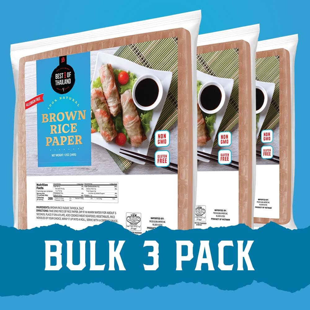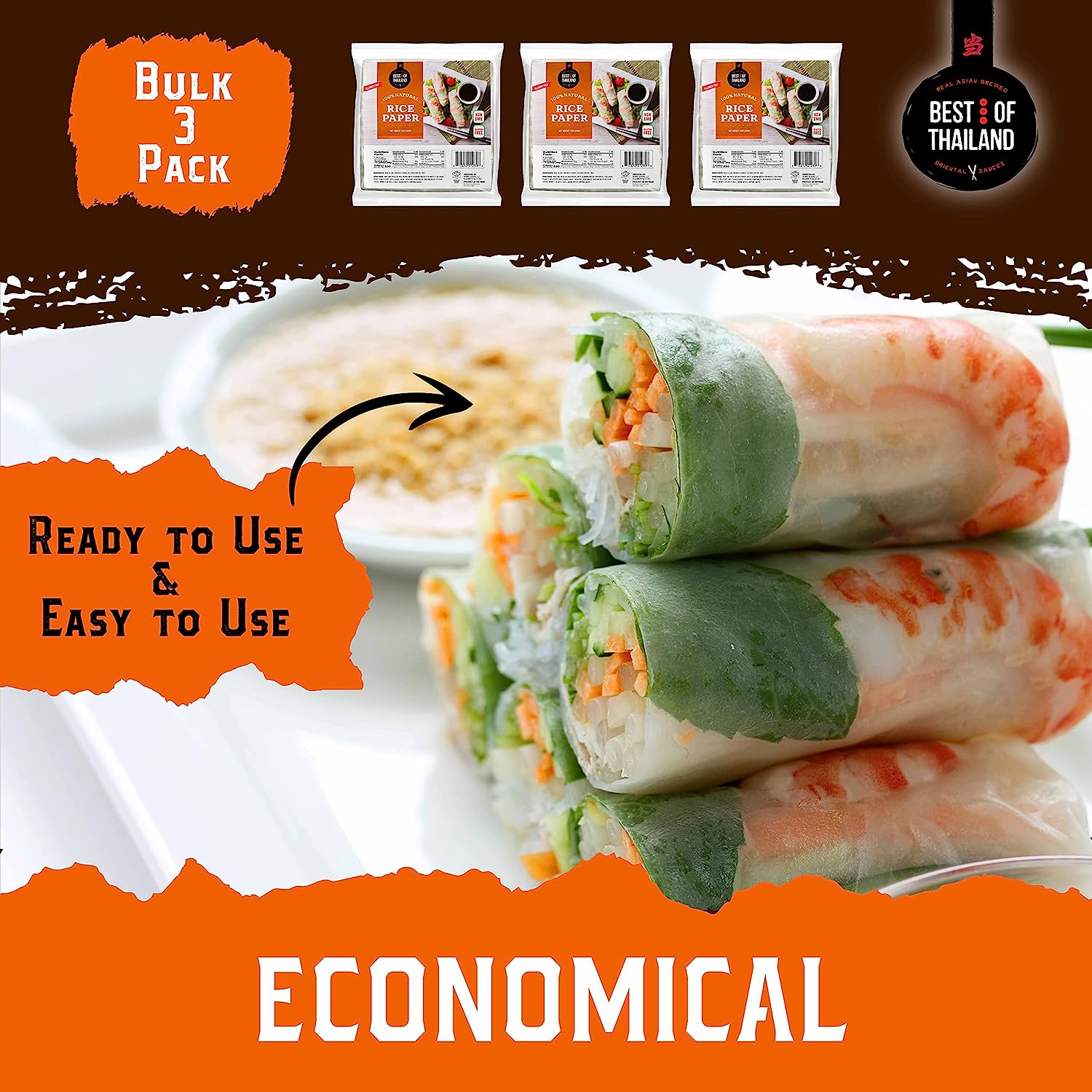 Best of Thailand [Round] White Rice Paper Wraps 3 Pack | Perfect for Fresh Spring Rolls & Dumplings | Non-GMO, Gluten-Free, Vegan & Paleo | Kosher for Passover Kitniyot