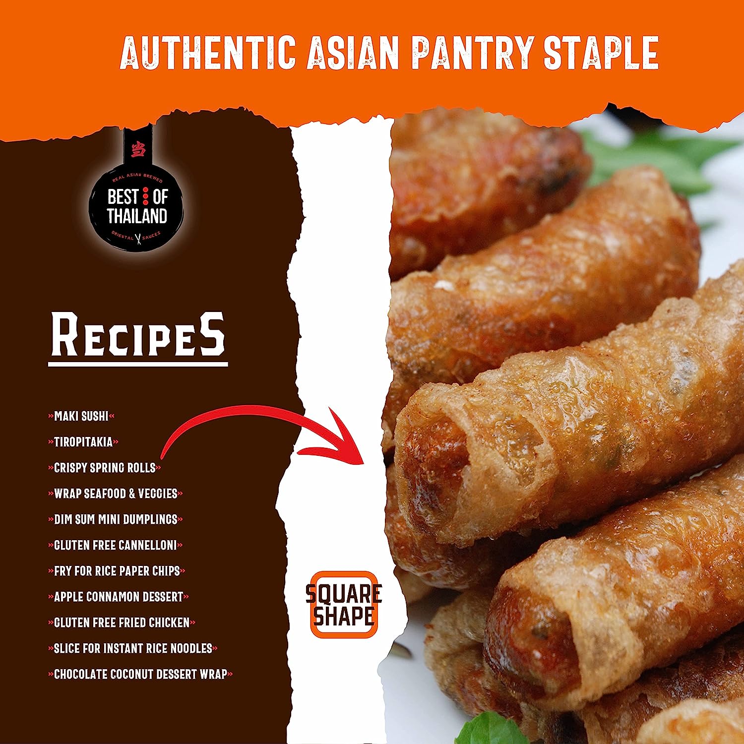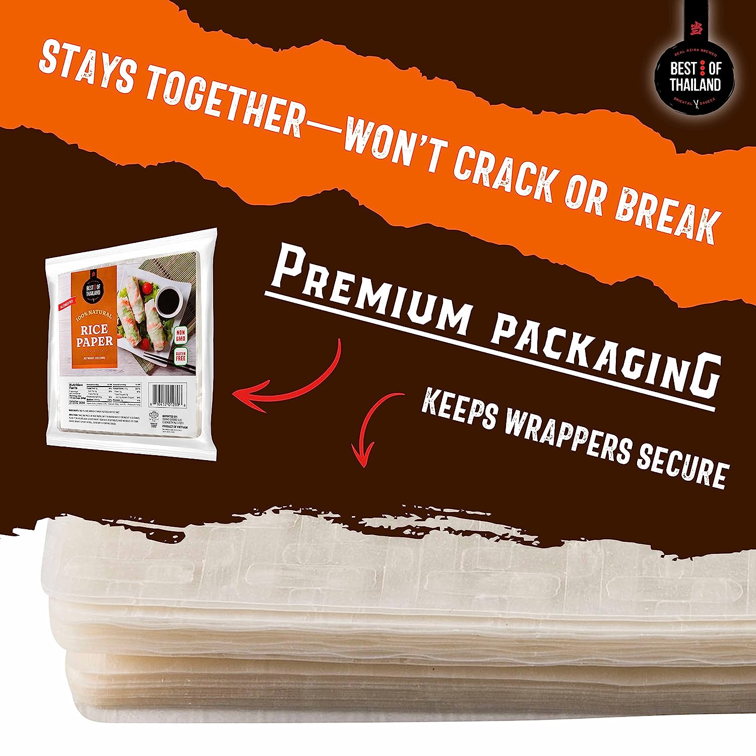 • STRONG PLIABLE WRAPPERS : Our rice papers are made from premium ingredients and do not break easily when wrapping ingredients. Simply fill them with your favorite protein, seafood or veggies for a tasty fresh roll that can be enjoyed anytime on-the-go.