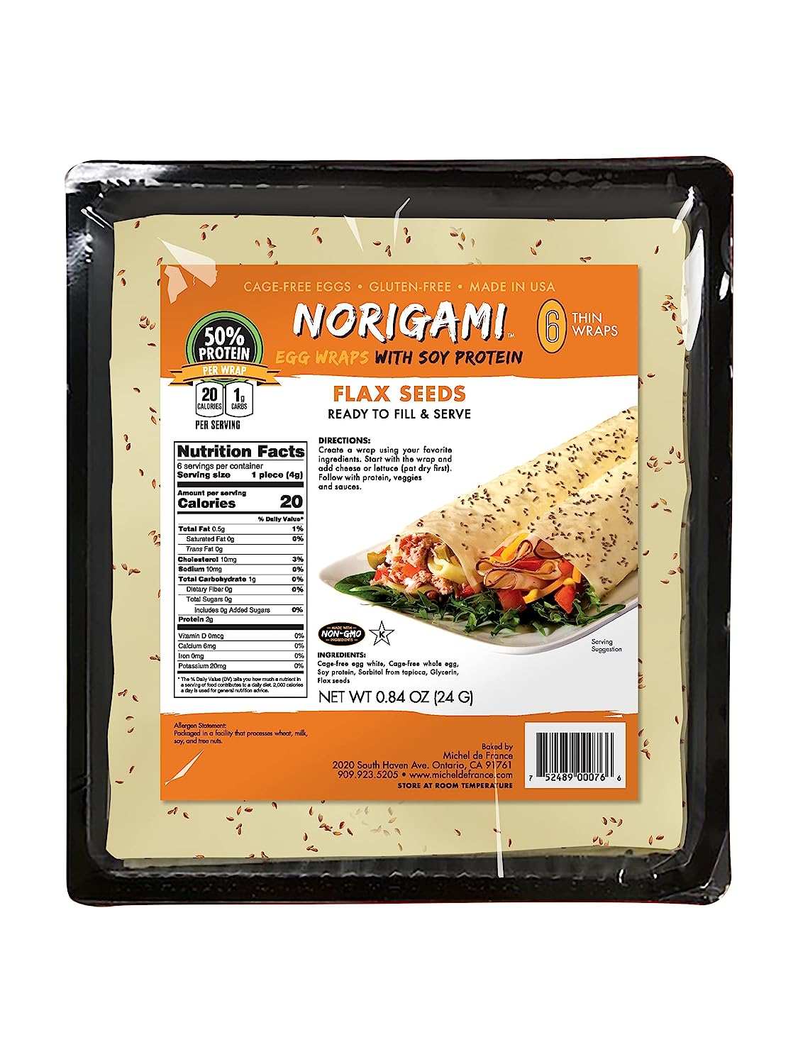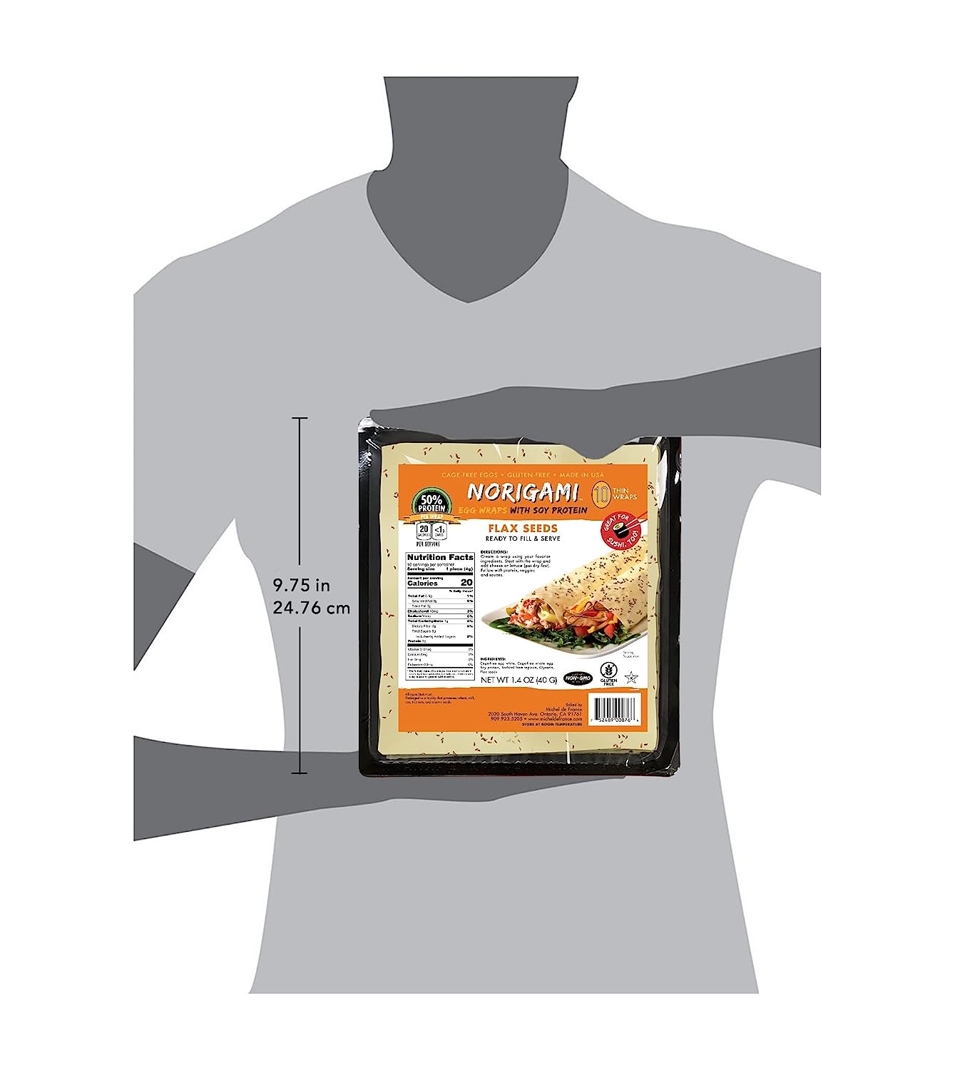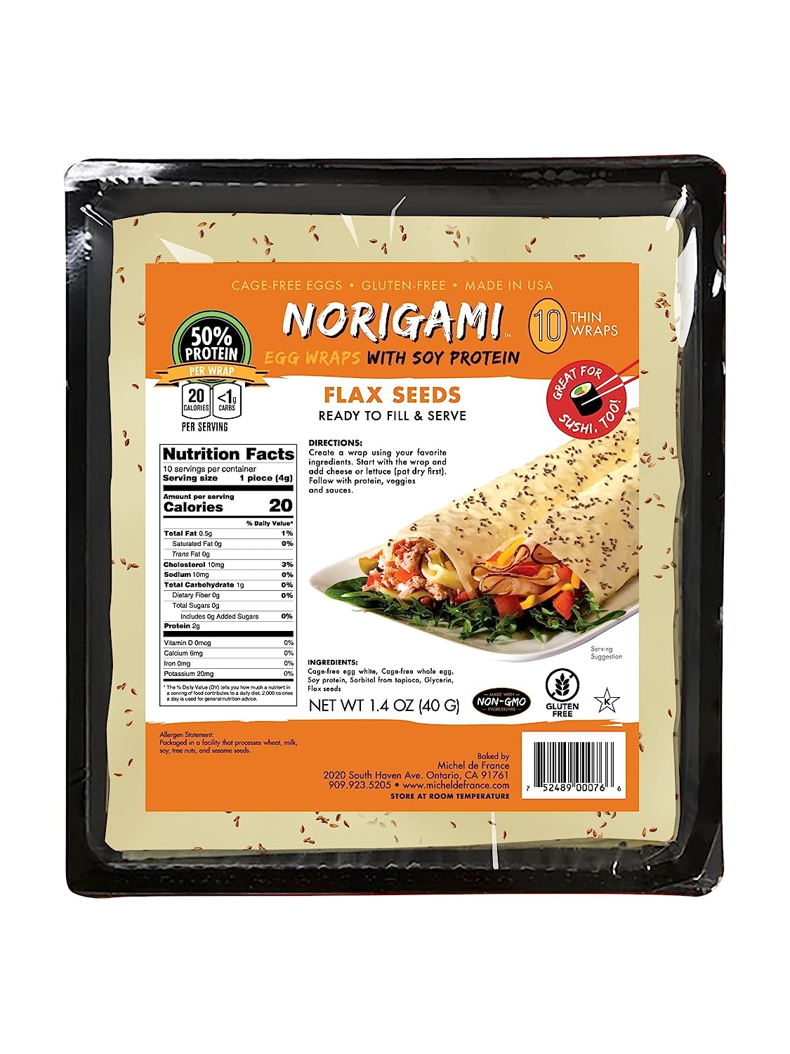 Norigami Egg Wraps with Soy Protein – Flax Seeds. High Protein, Low Carb, Vegetarian. Thin Healthy Wraps -Certified Kosher, Non-GMO, Gluten Free -NOW Featuring 10 Wraps in a bag. (1 Pack)
