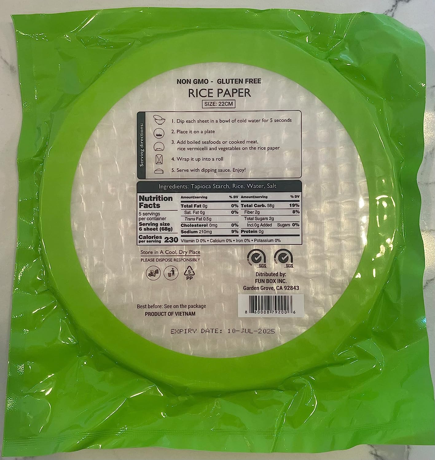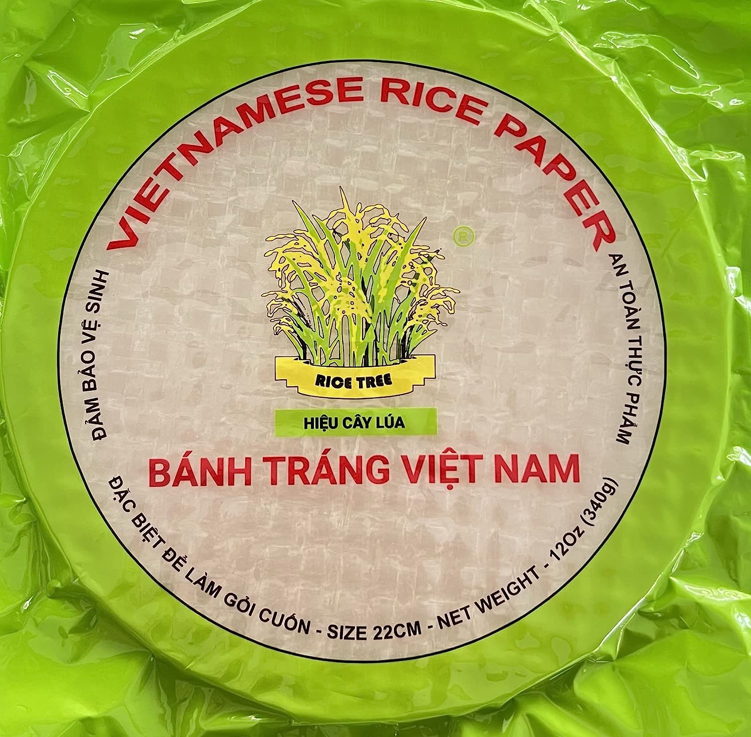 ORGANIC Spring Roll Rice Paper Wrapper for Fresh roll (22cm, Round, 12 oz), NON GMO, GLUTEN FREE, Made In Vietnam, Banh Trang Goi Cuon
