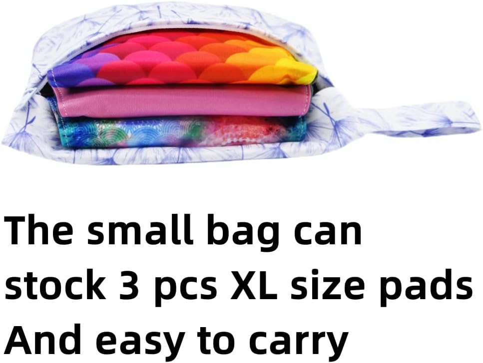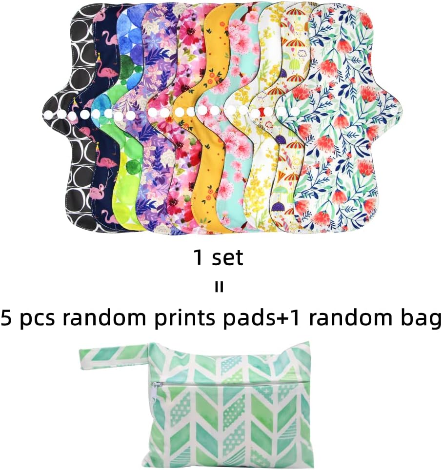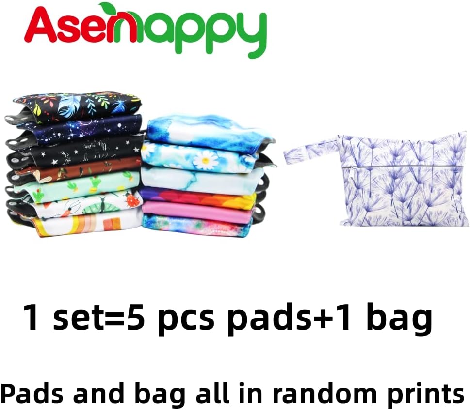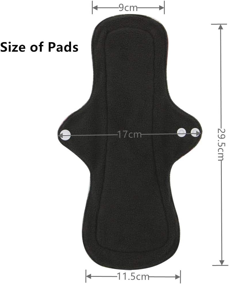 Asenappy Reusable Menstrual Pads - Bamboo Charcoal Menstrual Heavy Incontinence Pads |Sanitary Pads - Pack of 5, 1 Cloth Mini Wet Bag