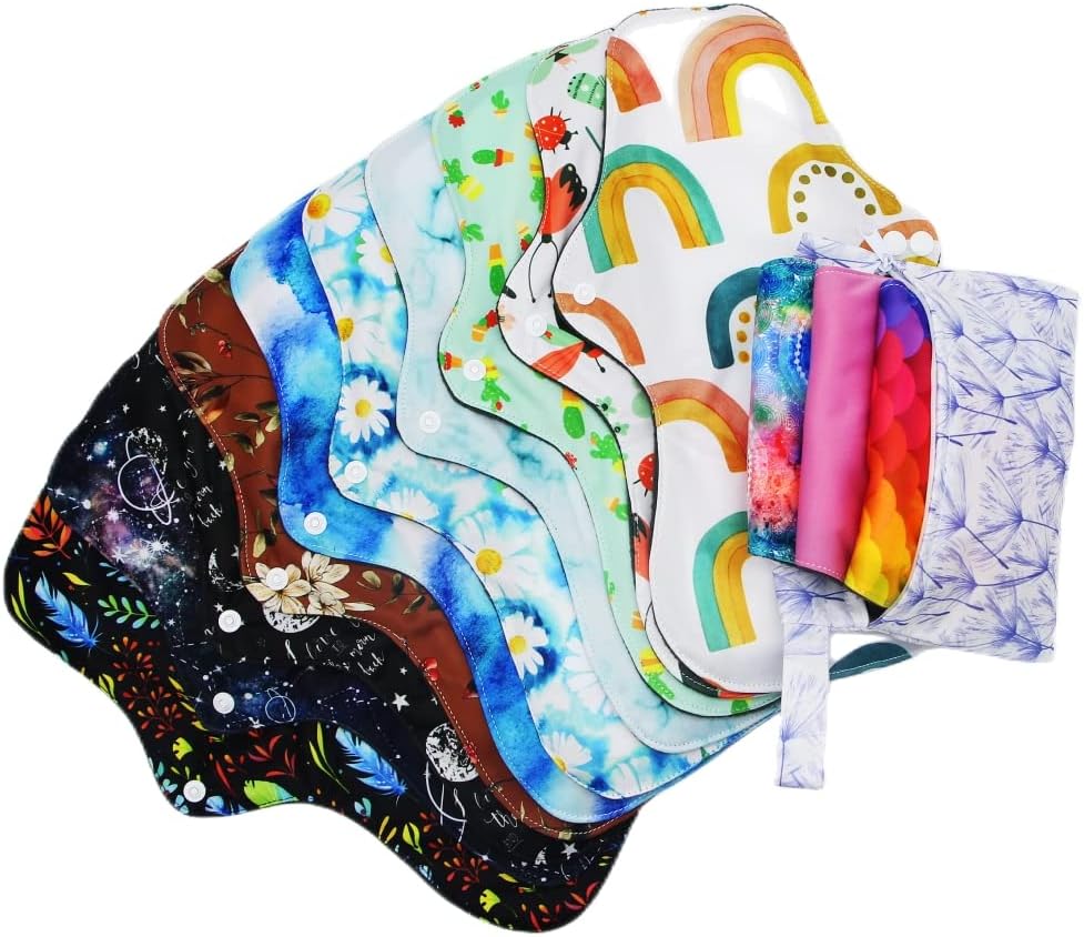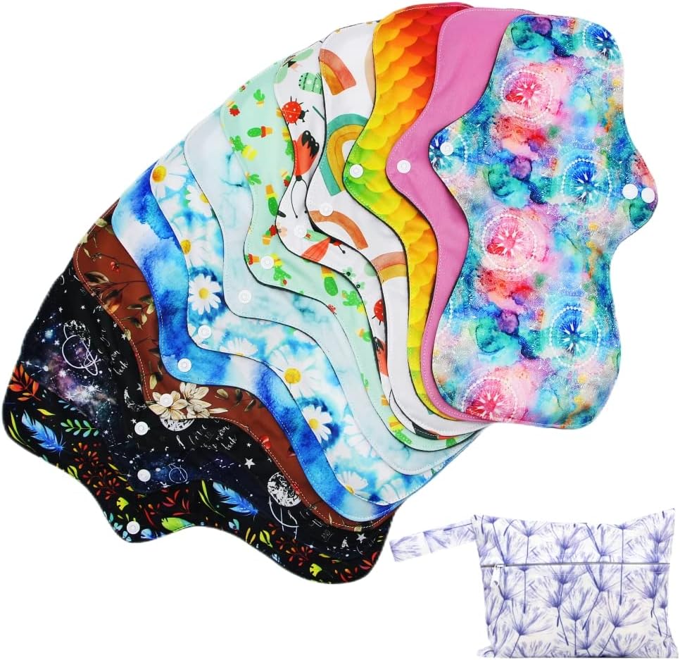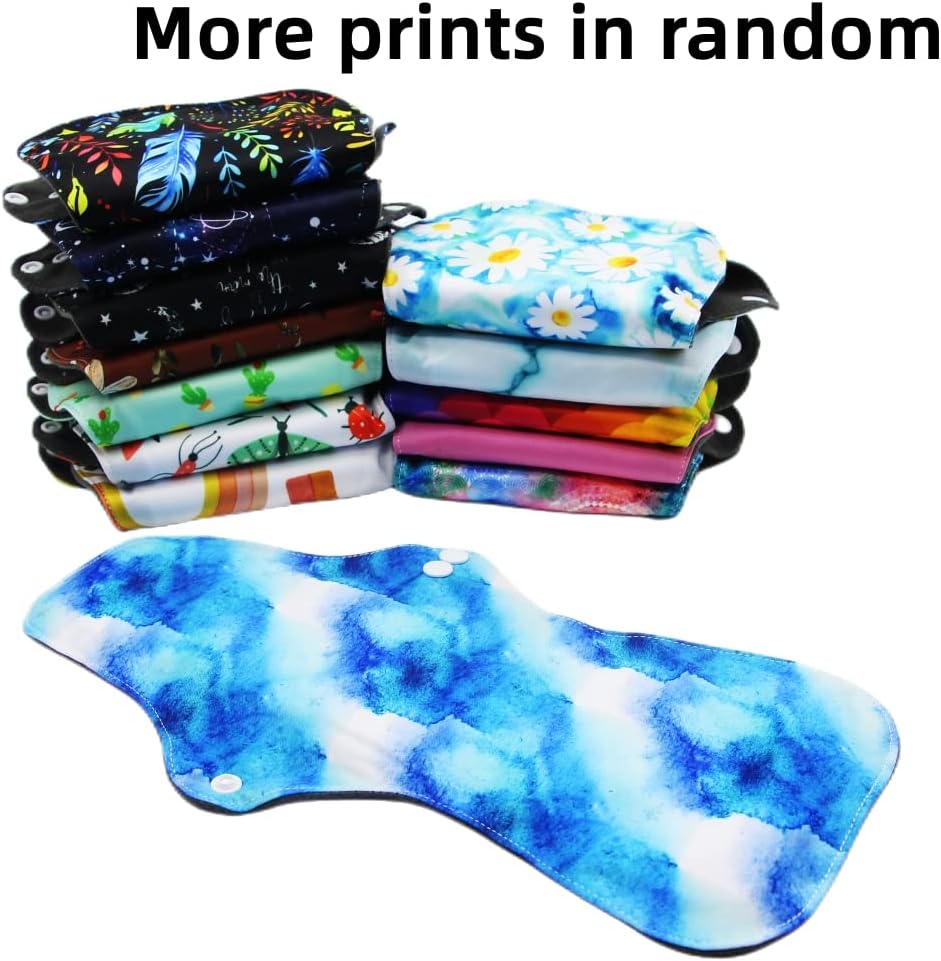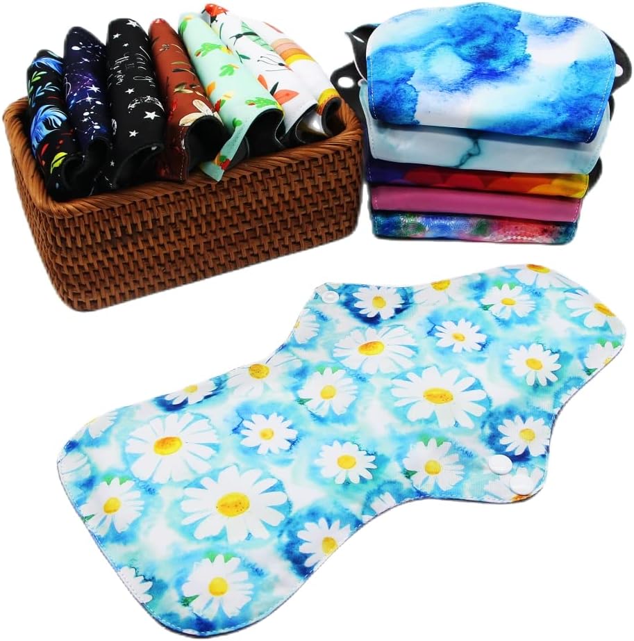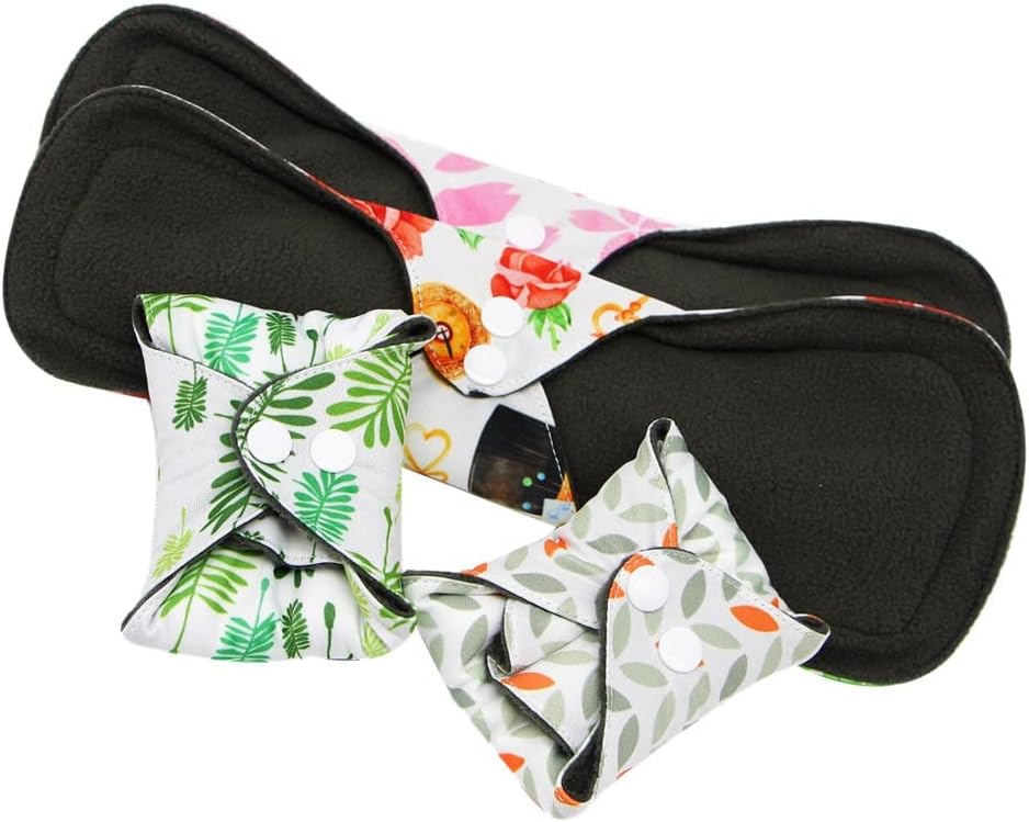 Plus size normal plusWashable sanitary towels with a length of 12 inches, suitable for women who need postpartum protection after giving birth and who have high intensity exercise and heavy menstrual flow Anti-leaksThere is a layer of PUL to prevent leakage and a pair of wings can tighten the undergarments to improve safety and firmness. Furthermore, the fan tail allows sanitary napkins to absorb more flow, avoiding leaks and allowing you to sleep comfortably Safety and hygienebamboo charcoal fiber: breathable, soft, fresh, comfortable, without harmful materials, fast absorption for a dry and comfortable feeling High efficiency water absorptionThe sanitary napkin consists of 4 layers: a bamboocharcoal layer, two inner layers of microfiber and a waterproof outer layer Economical and easy to washWashable sanitary napkins can be used repeatedly and machine washable in cold water