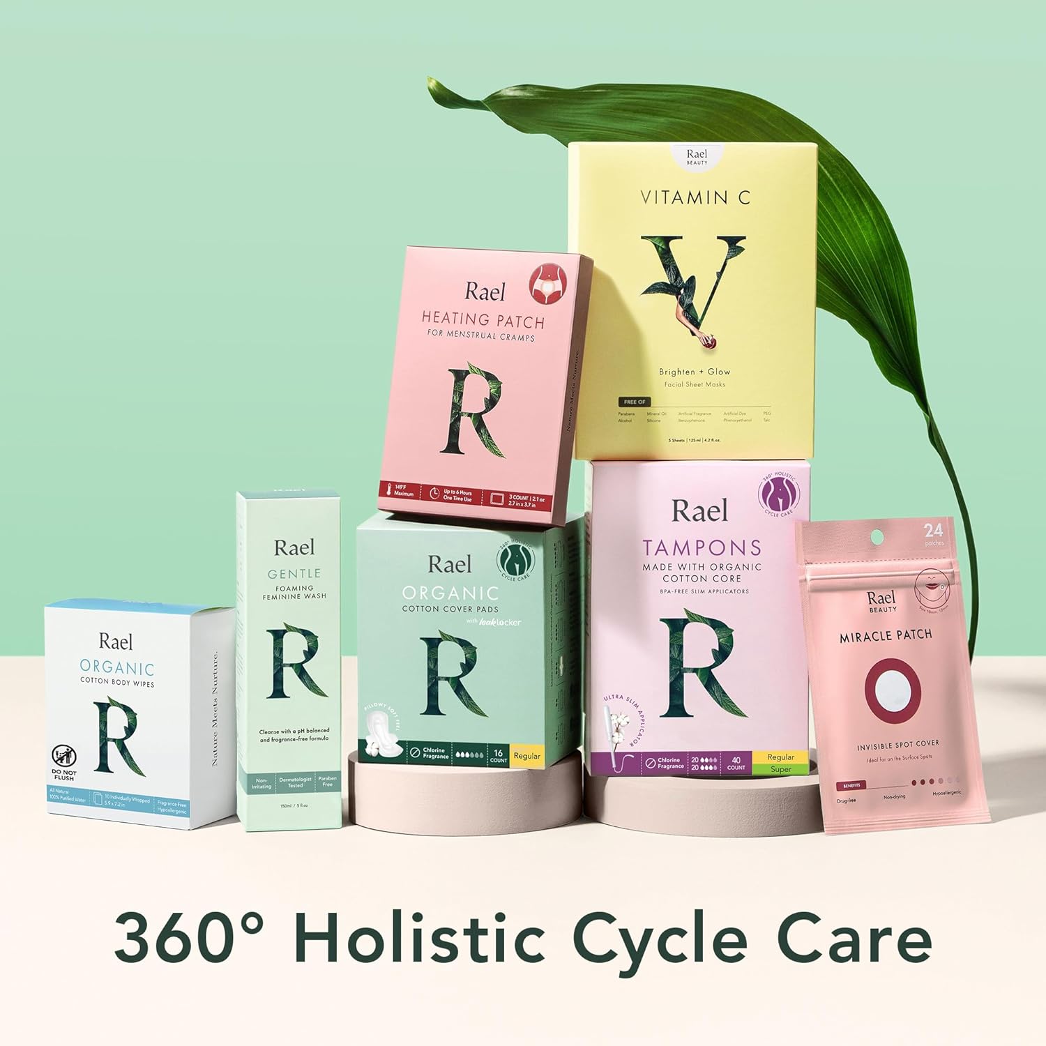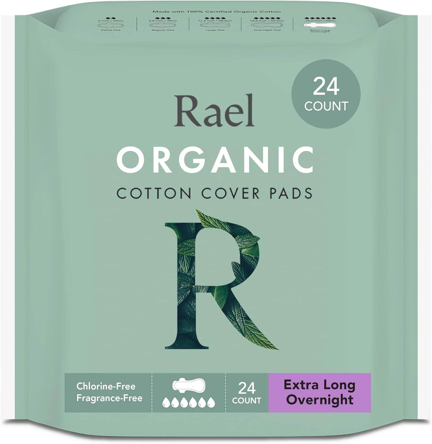 Rael Pads for Women, Organic Cotton Cover - Period Pads with Wings, Feminine Care, Sanitary Napkins, Heavy Absorbency, Unscented, Ultra Thin (Overnight, 40 Count)