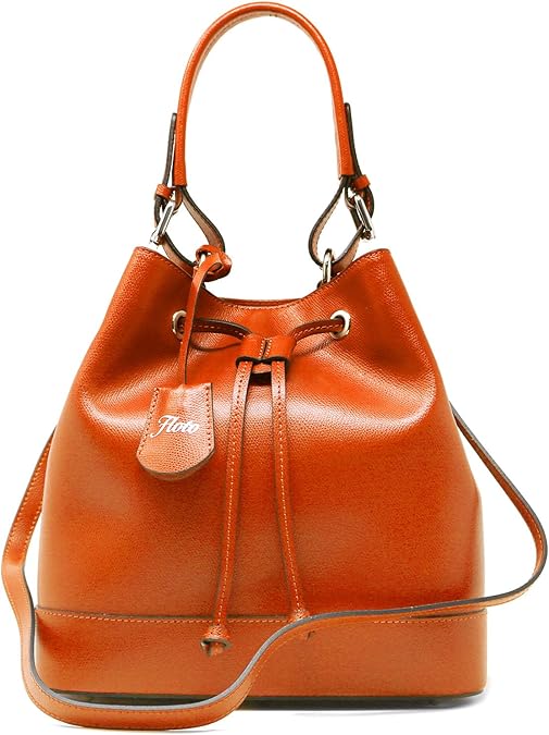Floto Milano Leather Bucket Tote Bag, Italian Leather Handbag with Double Leather Handles, Made in Italy