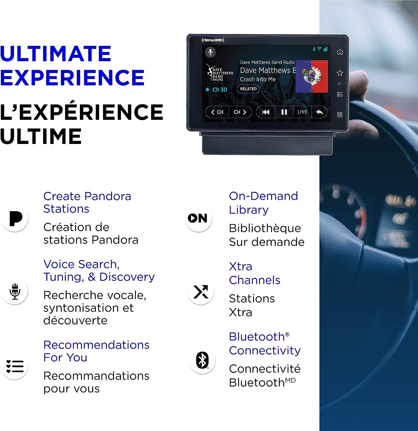 • ADVANCED FEATURES - Favorite any channel or content, such as on-demand shows, sports teams, Pandora stations, 100+ Xtra Channels (2), and more, for quick and easy access; plus, receive real-time alerts when a song, artist, or team plays on SiriusXM